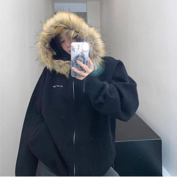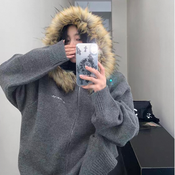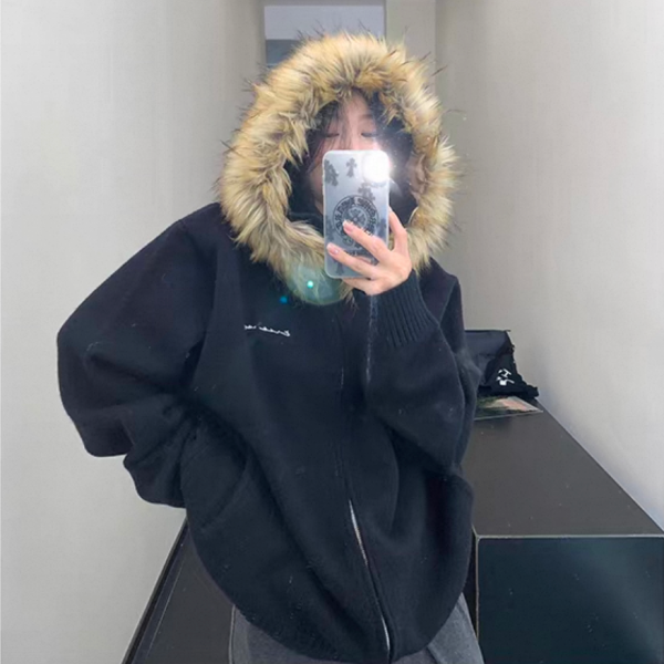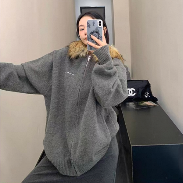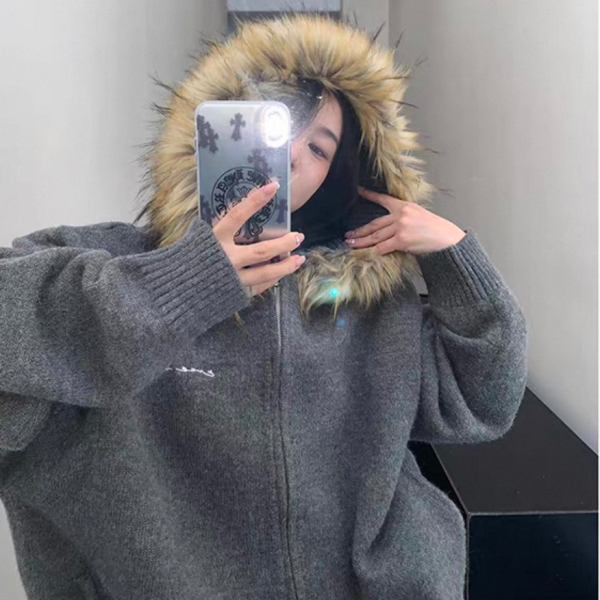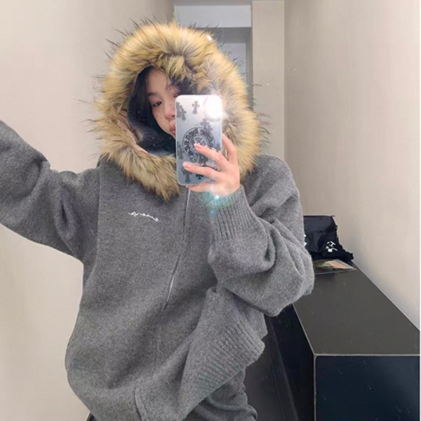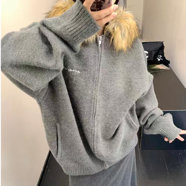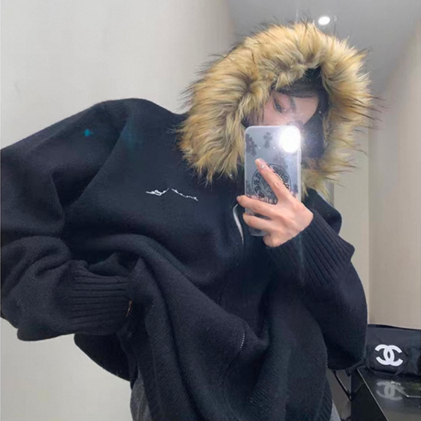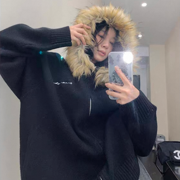 Youlaile studio RICE CAKE OISIS 2色展開 フェイクファー切替 ニットパーカー フーディー ニットジャケット ワンホンが入荷しました。