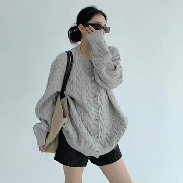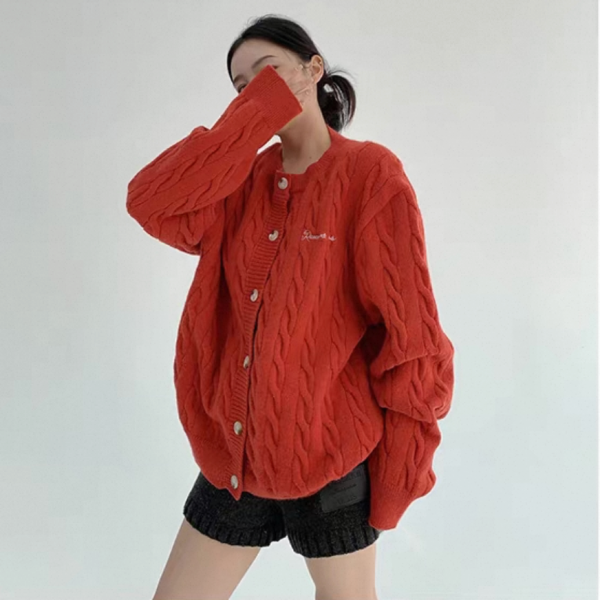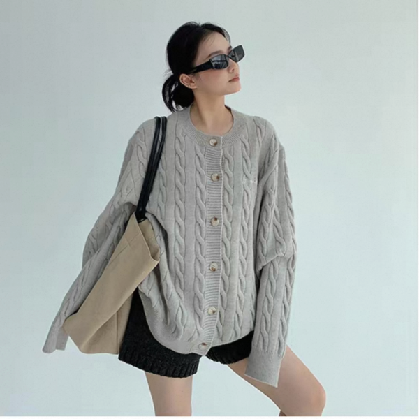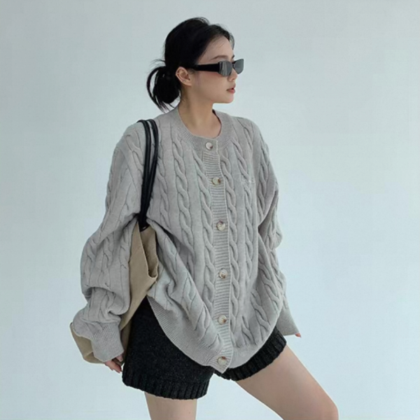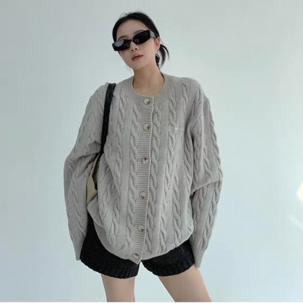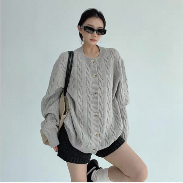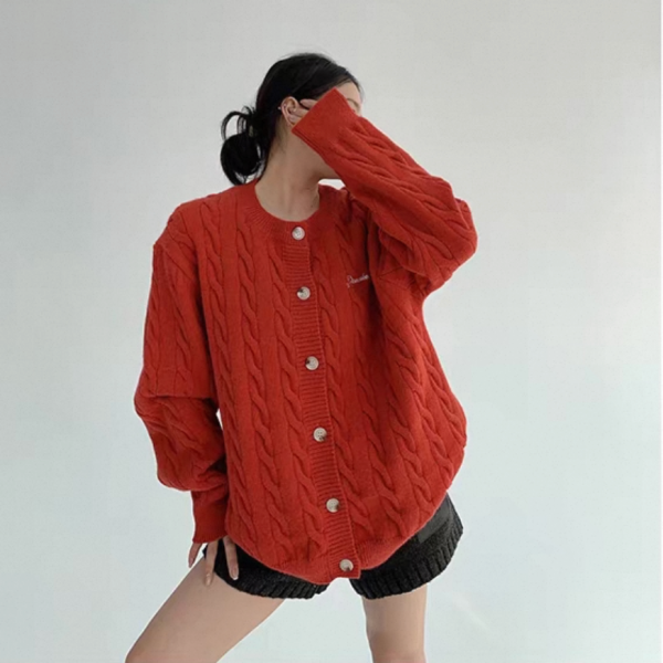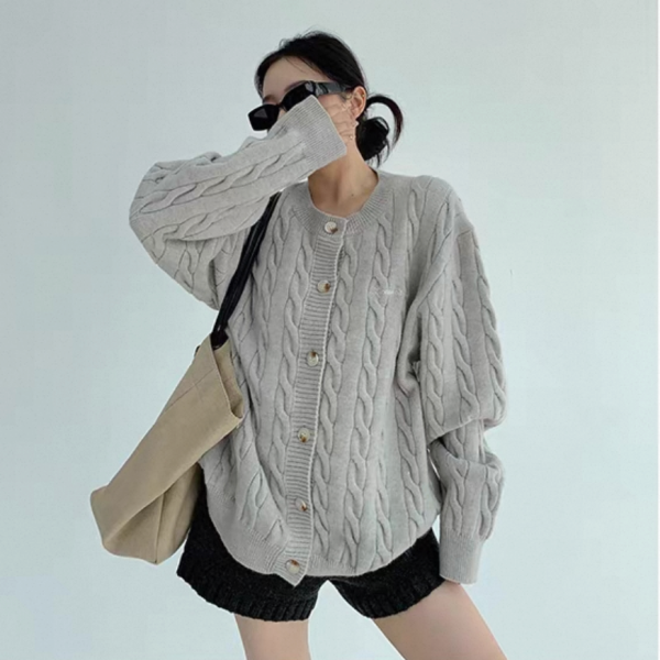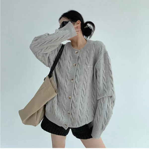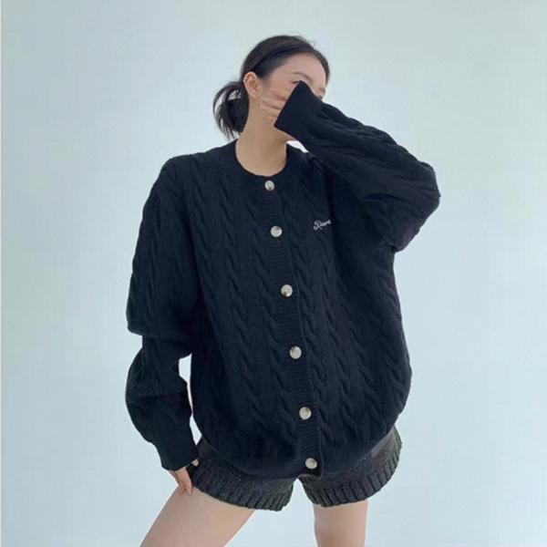 Youlaile studio RICE CAKE OISIS 3色展開 ケーブル編み クルーネック 刺繍 ロゴデザイン フロントボタン ニットカーディガン セーター トップス ワンホンが入荷しました。