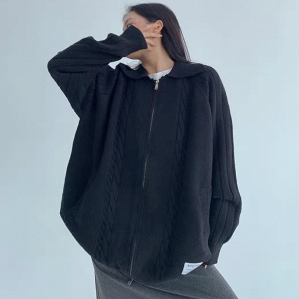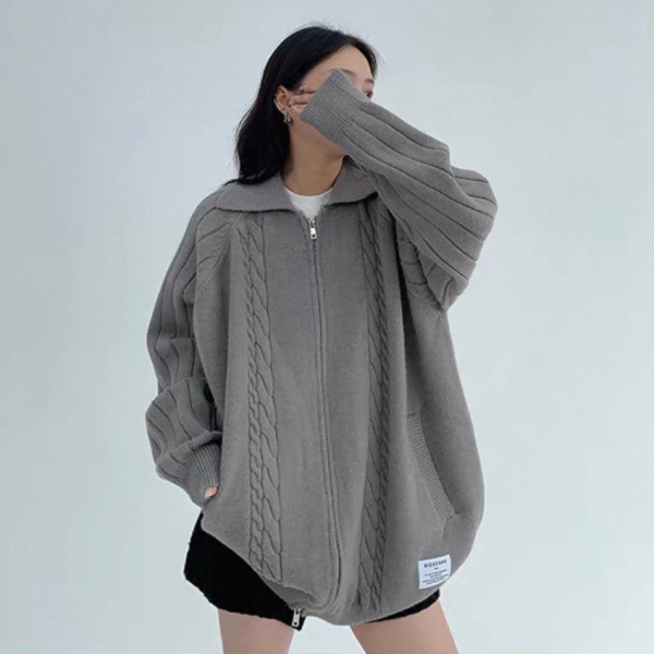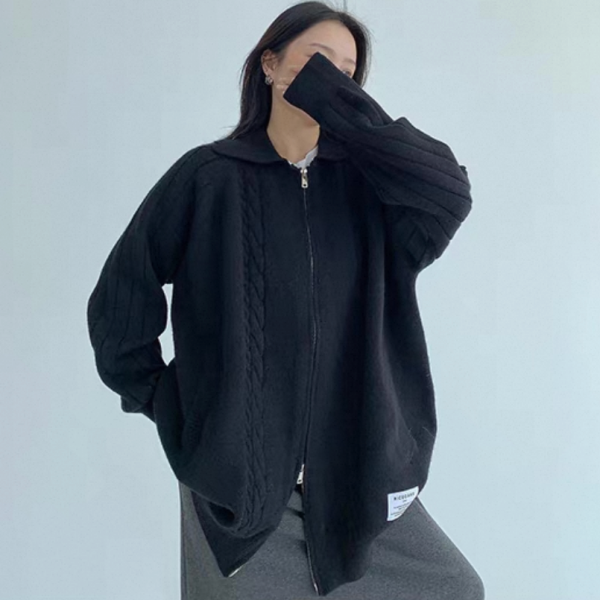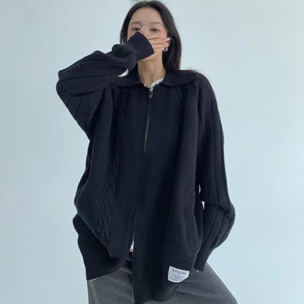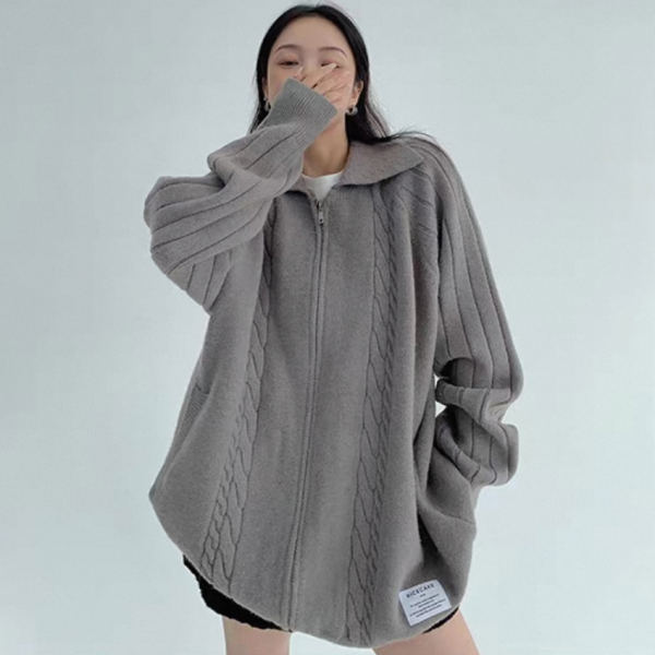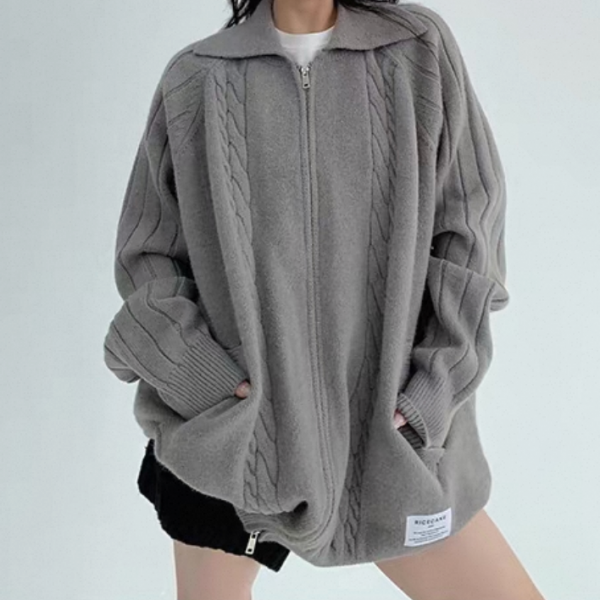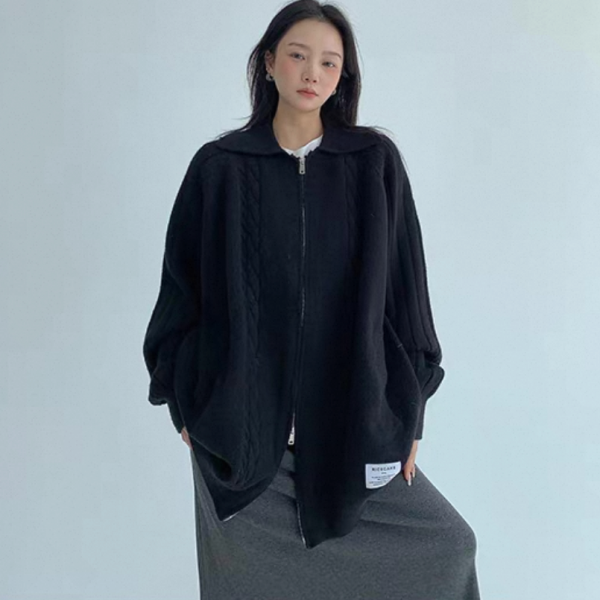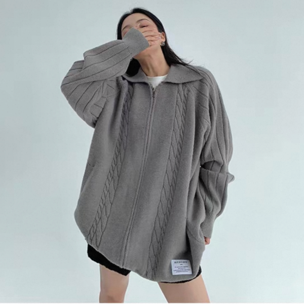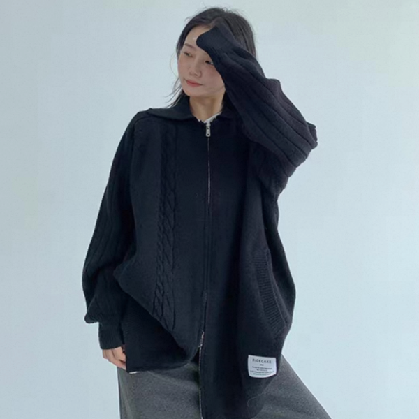 Youlaile studio RICE CAKE OISIS 2色展開 襟付き オーバーサイズ フロントジッパー ジップアップ ファスナー ニットジャケット リブデザイン ケーブル編み ニットカーディガン ワンホンが入荷しました。