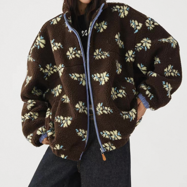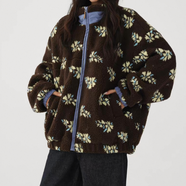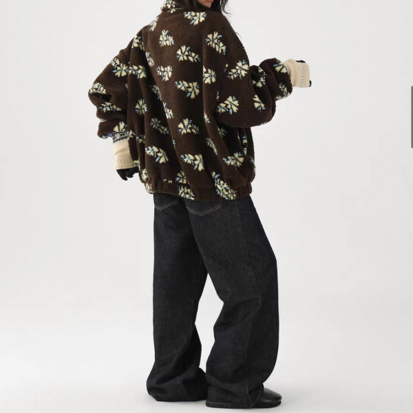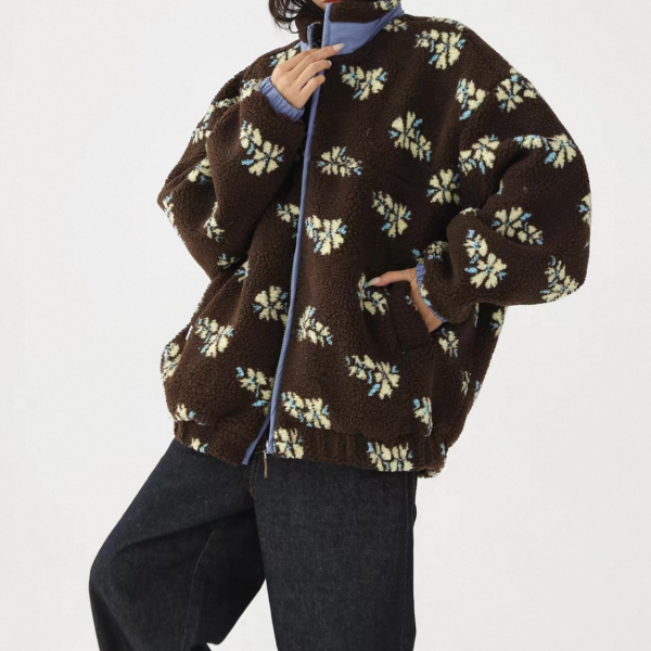 AceStudios ブラウン 花柄 フラワー スタンドカラー フリースジャケット ボアジャケット 総柄 ワンホンが入荷しました。