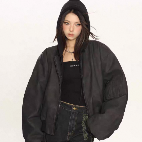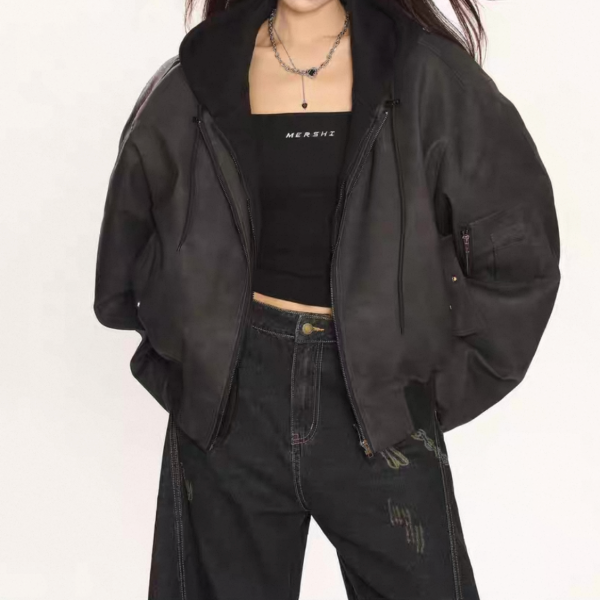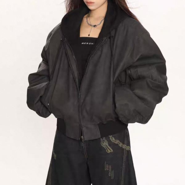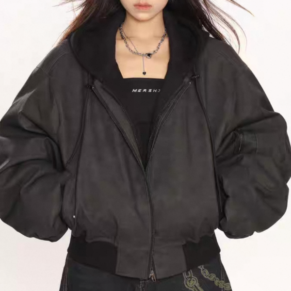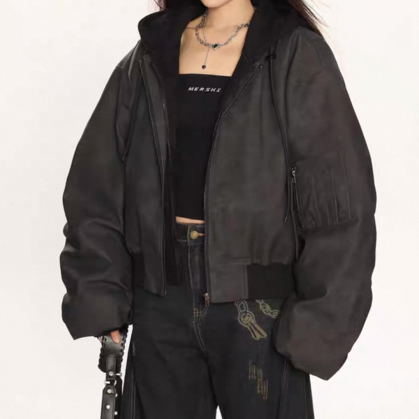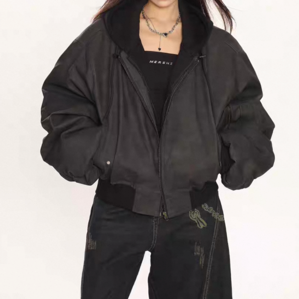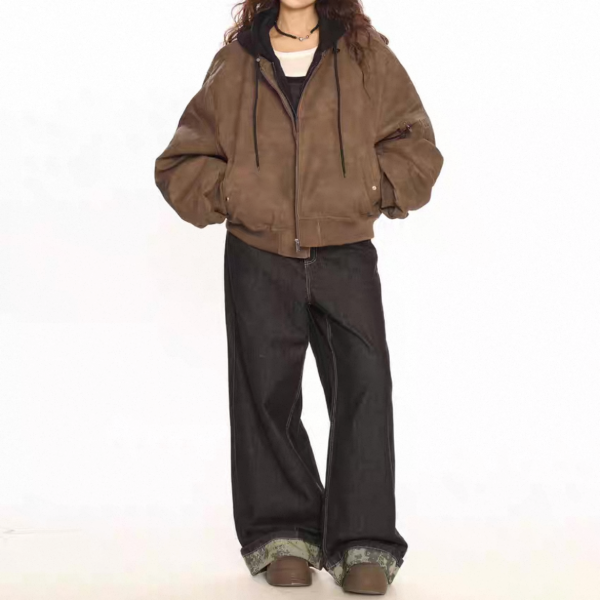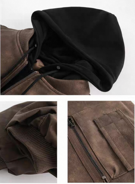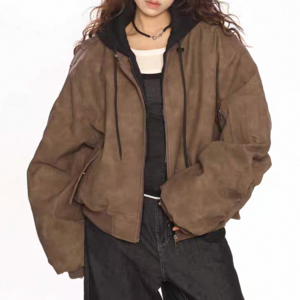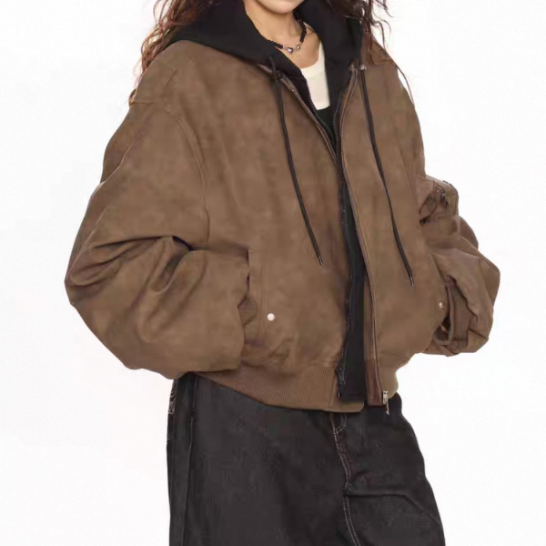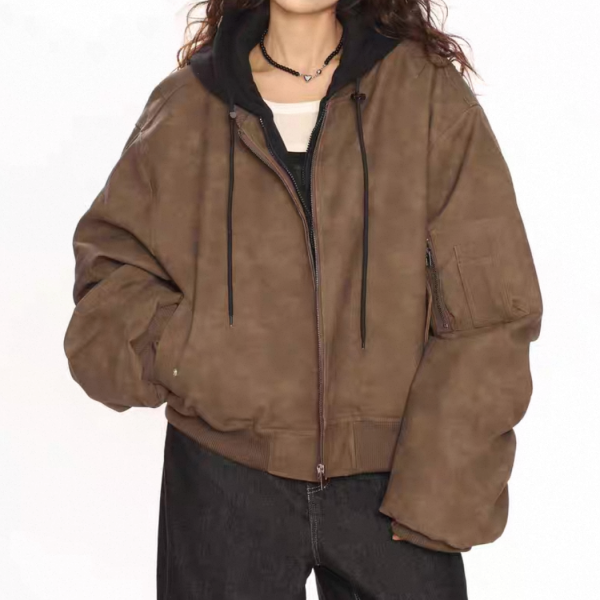 【大特価】BIGGOLD STUDIO 2色展開 レイヤード 重ね着風 フェイクスエード 合皮 ボンバージャケット ブルゾン パーカー フーディー ワンホン