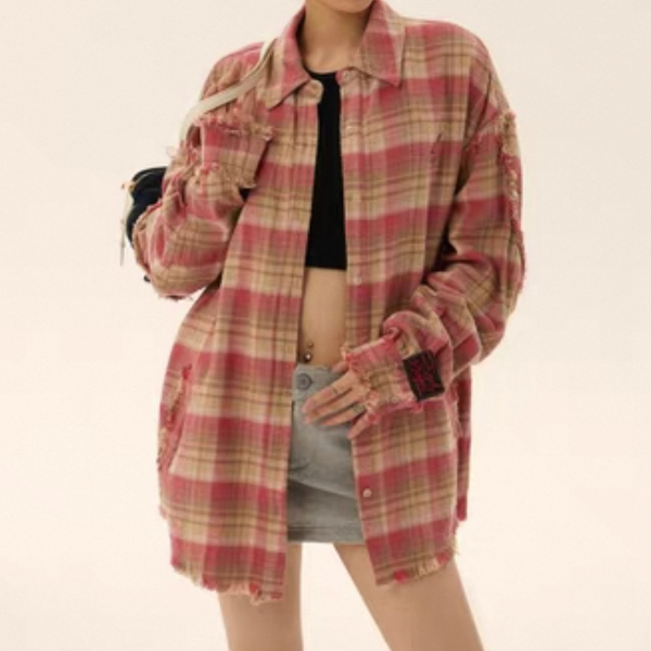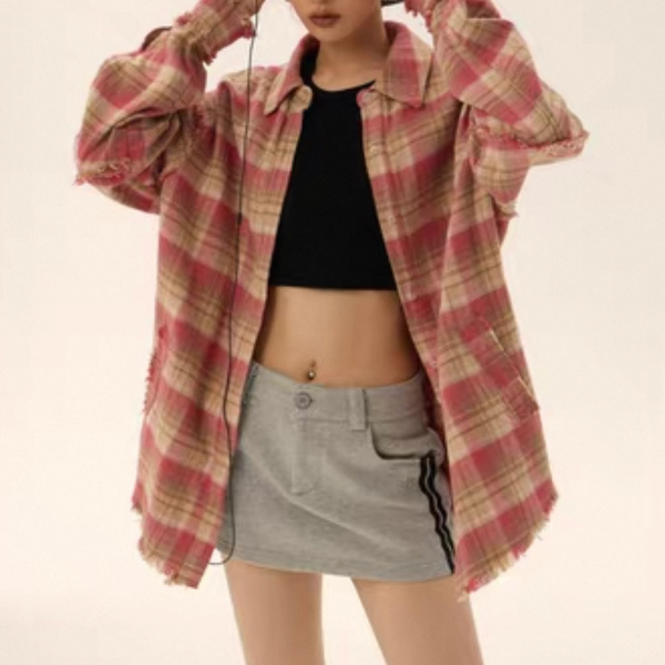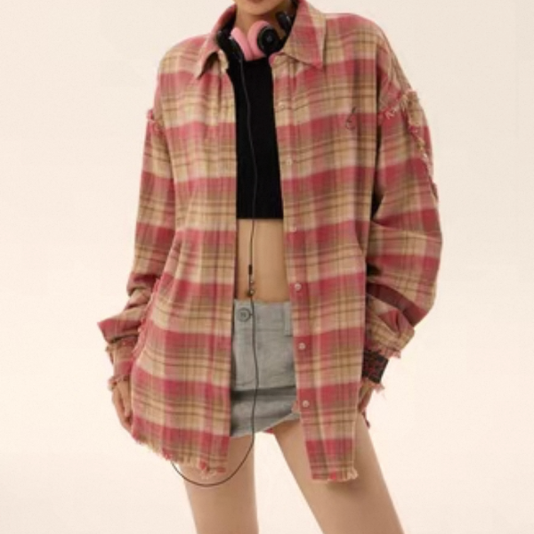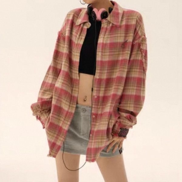 EZEK ピンク チェック柄 チェックシャツ 長袖 シャツ ブラウス トップス カットソー ワンホン が入荷しました。