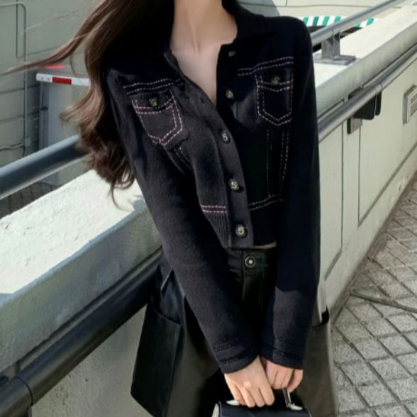 ブラック No5 ロゴボタン ウール調 ステッチ トリムデザイン 長袖 シャツ トップス カットソー が入荷しました。