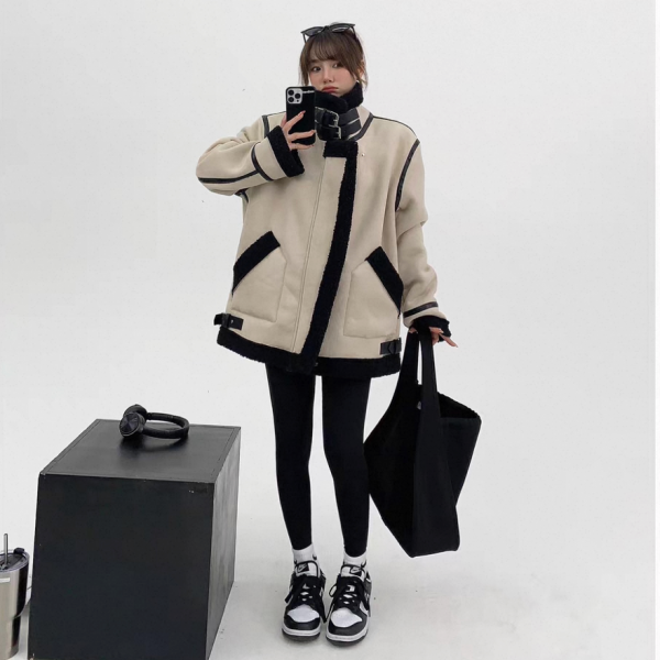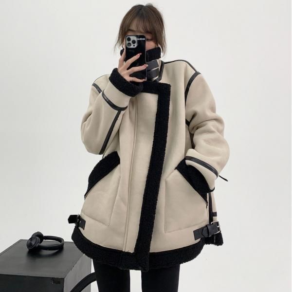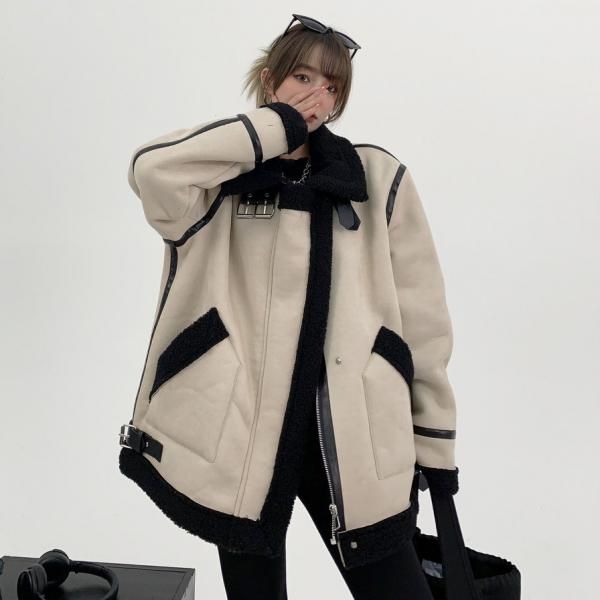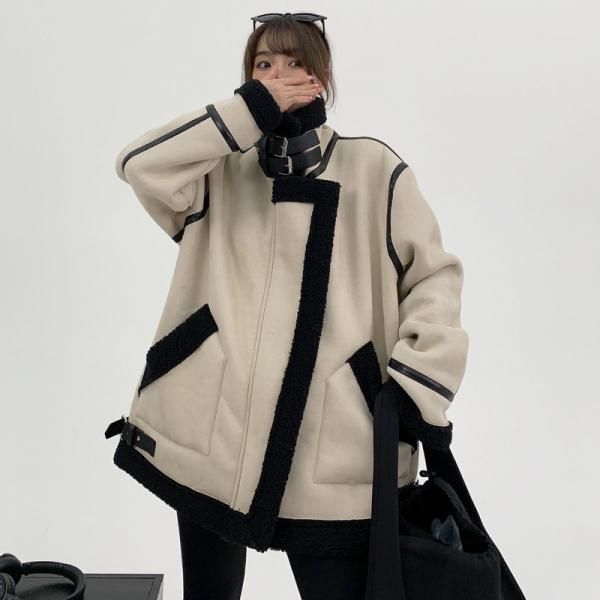 Youlaile studio RICE CAKE OISIS ベージュ バイカラー ブラックトリム オーバーサイズ フェイクスエードコート ムートンコート ムートンジャケット ムスタングジャケット ボアコート ワンホンが入荷しました。