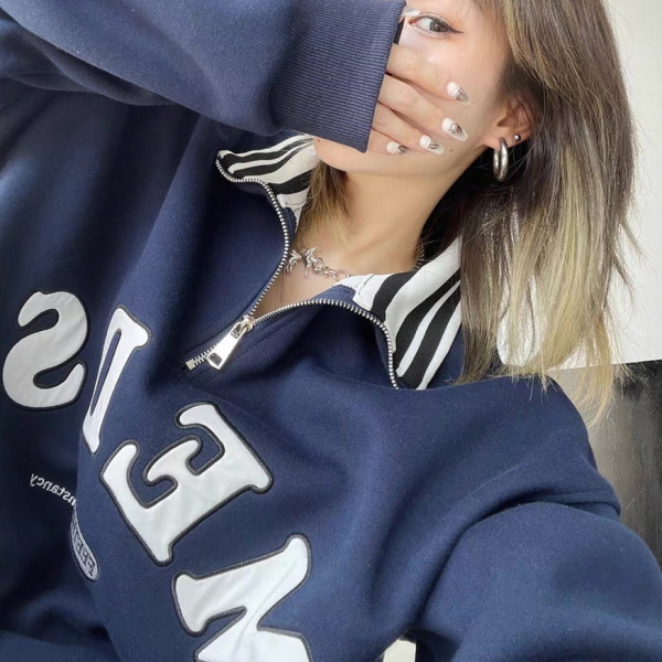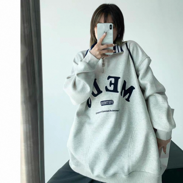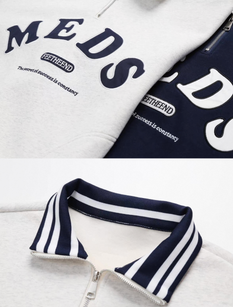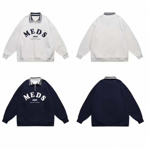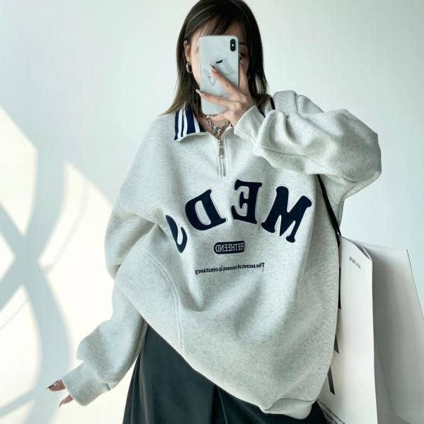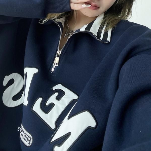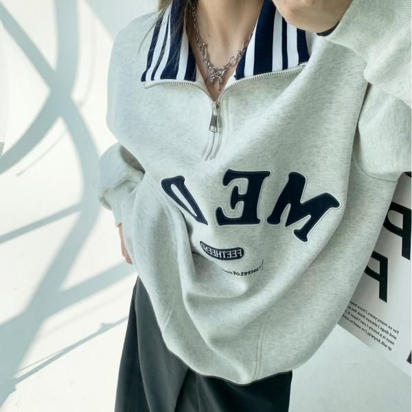 Youlaile studio RICE CAKE OISIS 2色展開 MEDS フロントロゴ ストライプカラー 襟付き ハーフジッパー ジップアップ ファスナー スウェット トレーナー プルオーバー トップス ワンホンが入荷しました。