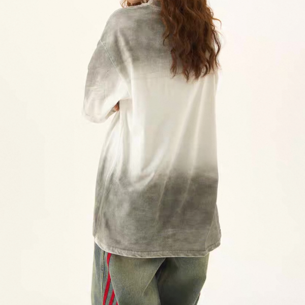 H GANG X グレー タイダイ柄 染めプリント フロントロゴ グラデーション Tシャツ 半袖 オーバーサイズ トップス ユニセックスが入荷しました。