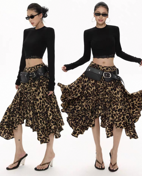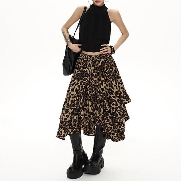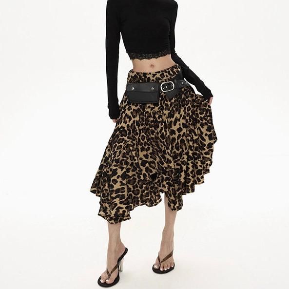 ZERO STORE ブラウン レオパード柄 ひょう柄 ラッフルフリル アシンメトリースカート ミディスカート 変形デザイン ロングスカート フレアスカート ワンホンが入荷しました。