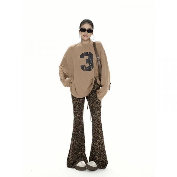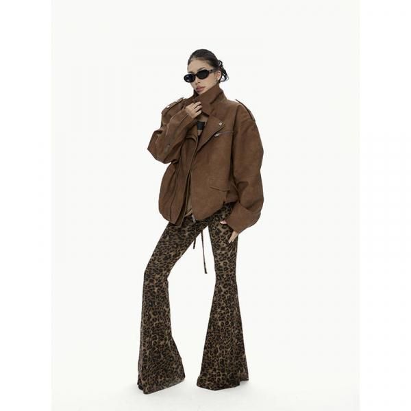 【大特価】ZERO STORE ブラウン レオパード柄 ひょう柄 フレアパンツ ロングパンツ ワイドレッグパンツ ブーツカットパンツ ワンホン