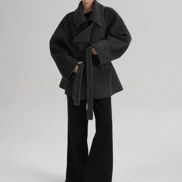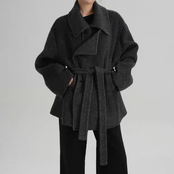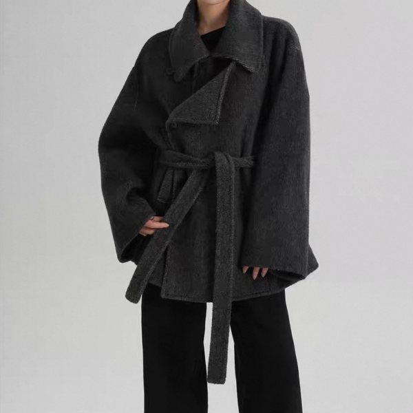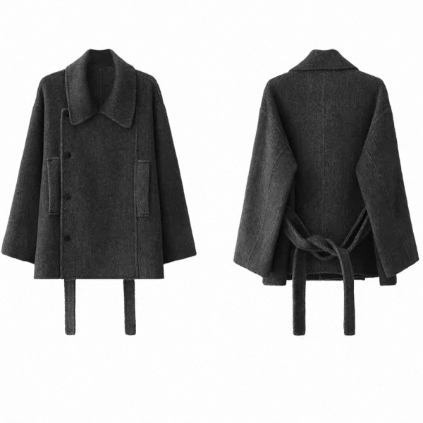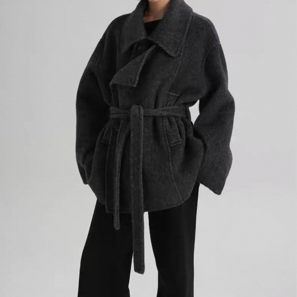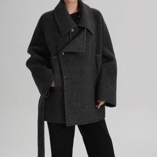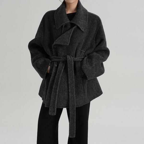 SRYS ダークグレー ウール調 トレンチデザイン ダブルボタン ダブルブレスト ミドル丈コート トレンチコート トレンチジャケット ワンホンが入荷しました。