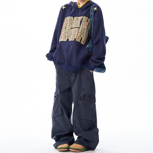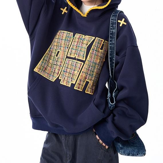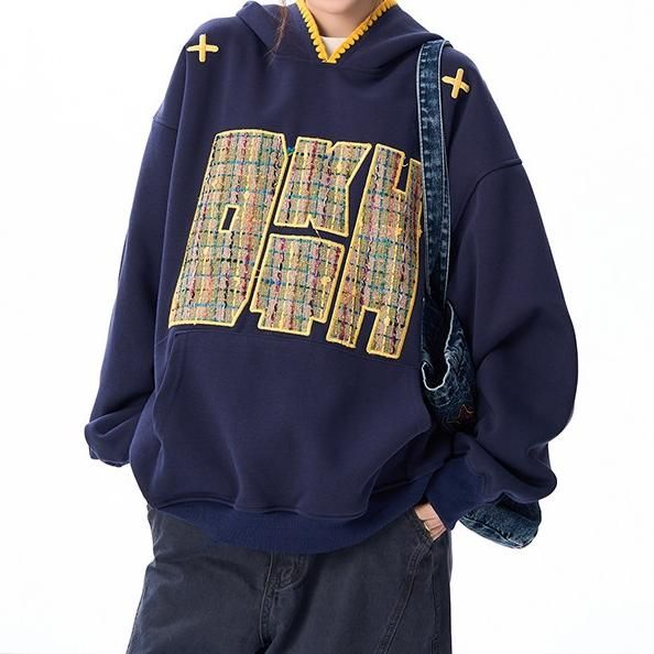【大特価】H GANG X 3色展開 ツイードロゴ オーバーサイズ トリムデザイン スウェット トレーナー プルオーバー パーカー フーディー ワンホン