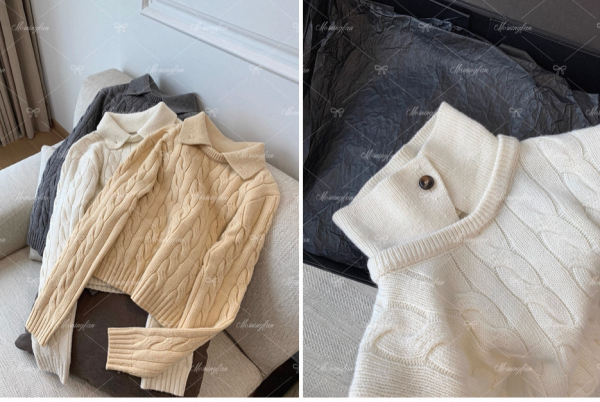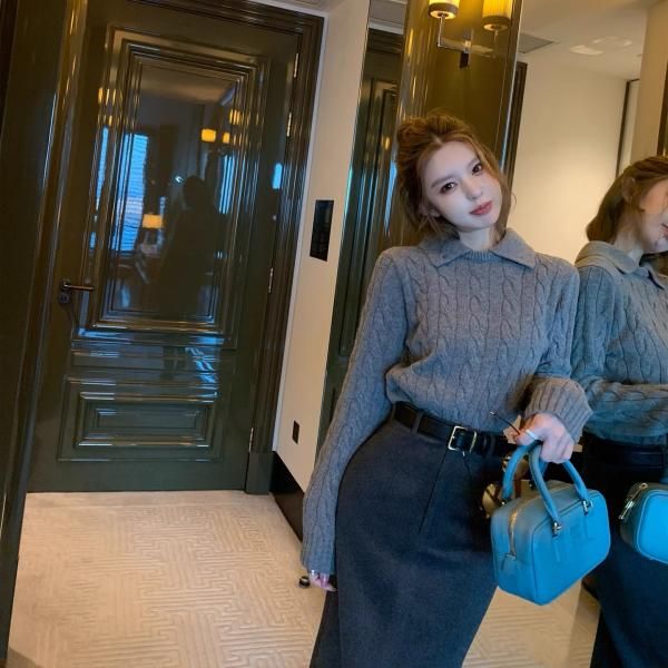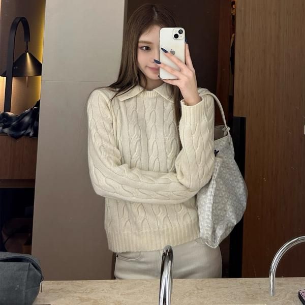 【大特価】3色展開 ケーブル編み 襟付き レイヤード 重ね着風 ニット セーター トップス 韓国 インポート 通販