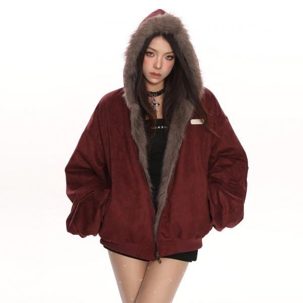 BIGGOLD STUDIO 2色展開 リバーシブル 2way ジッパー ジップアップ ファスナー フェイクファーパーカー フーディー オーバーサイズ ブルゾン ジャケット ワンホンが入荷しました。