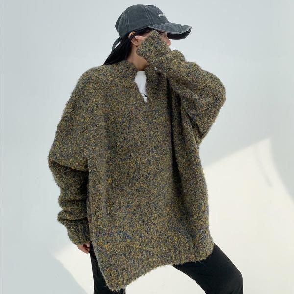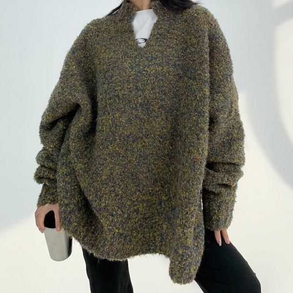 Youlaile studio RICE CAKE OISIS 2色展開 オーバーサイズ ミックスカラー Vネック ニット セーター トップス プルオーバー ワンホンが入荷しました。