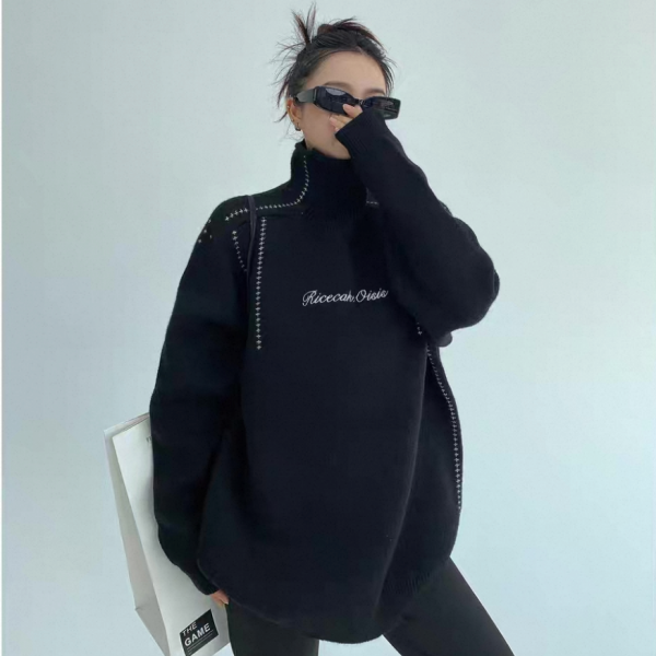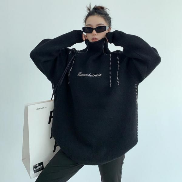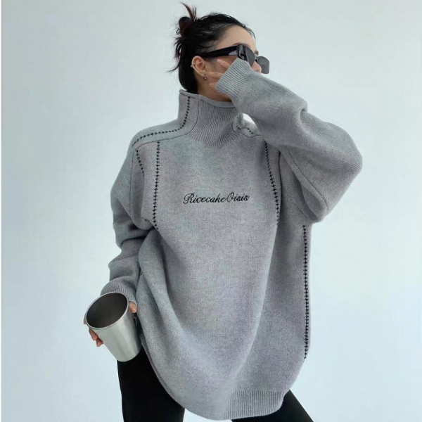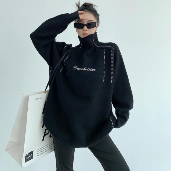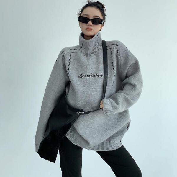 Youlaile studio RICE CAKE OISIS 2色展開 ステッチ フロントロゴ タートルネック ハイネック 長袖 ニット セーター トップス ワンホンが入荷しました。