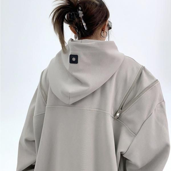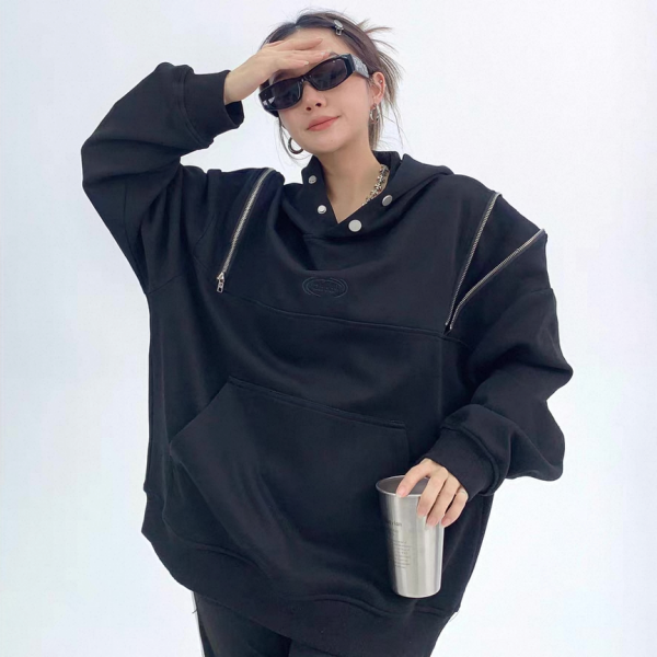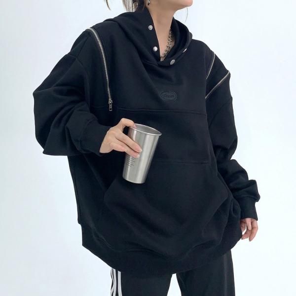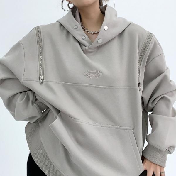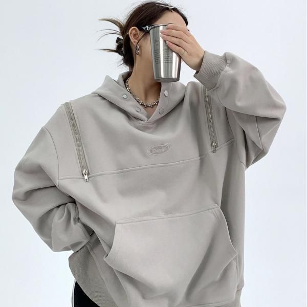 Youlaile studio RICE CAKE OISIS 2色展開 ダブルジッパー ジップアップ ファスナー ジップショルダー フロントボタン ハイネック スタンドカラー スウェット トレーナー プルオーバー パーカー フーディー トップス ワンホンが入荷しました。