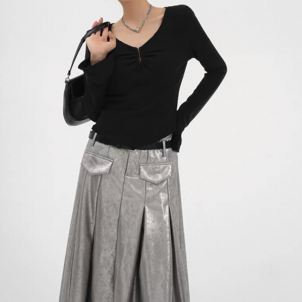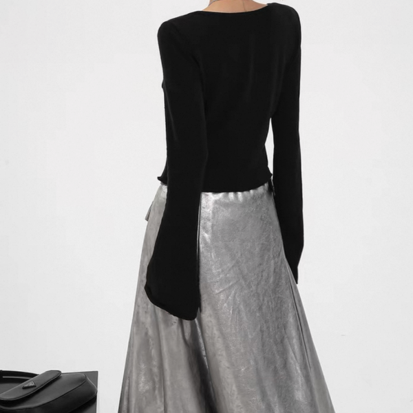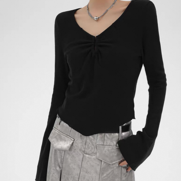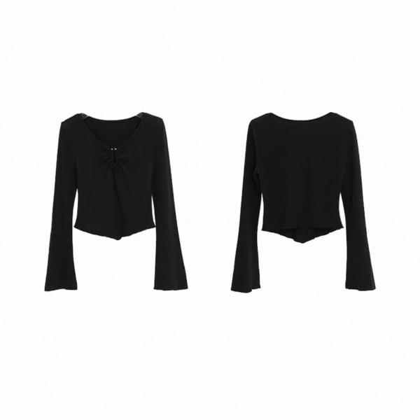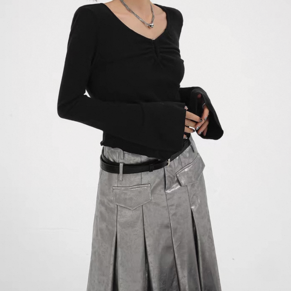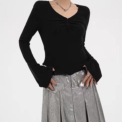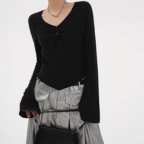 SRYS ブラック Uシェイプ 長袖 ドレープ スクープネック 長袖 トップス カットソー 無地 シンプル ワンホンが入荷しました。