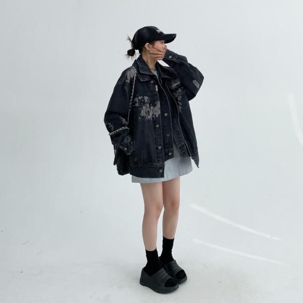 Youlaile studio RICE CAKE OISIS ブラック ウォッシュ加工 ビンテージ風 ブリーチ加工 デニムジャケット Gジャン トラッカージャケット ワンホンが入荷しました。