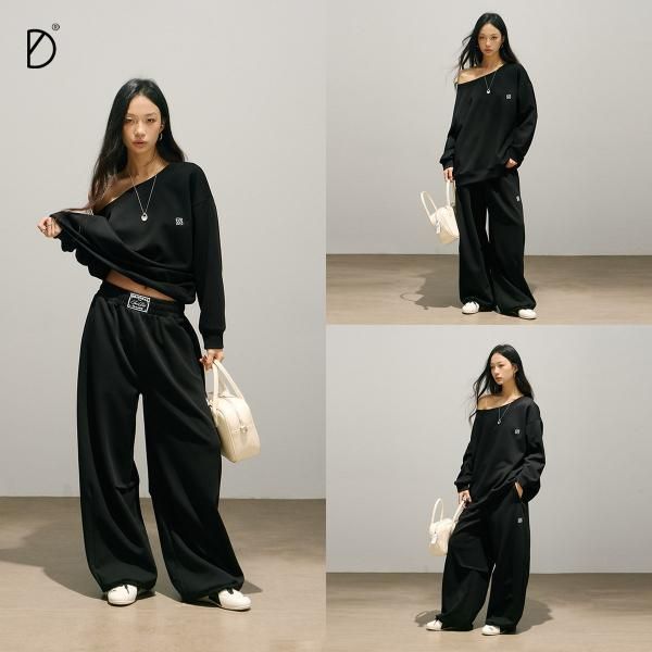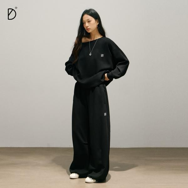 SMILE DDD ブラック ワンショルダー オフショルダー スウェット トレーナー トップス ウエストロゴ スウェットパンツ セットアップ ロングパンツ ワンホン が入荷しました。