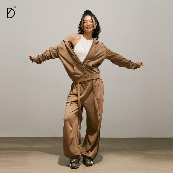 【大特価】SMILE DDD ブラウン バックロゴ ジッパー ジップアップ ファスナー スウェット パーカー フーディー ジャケット スウェットパンツ セットアップ ワンホン