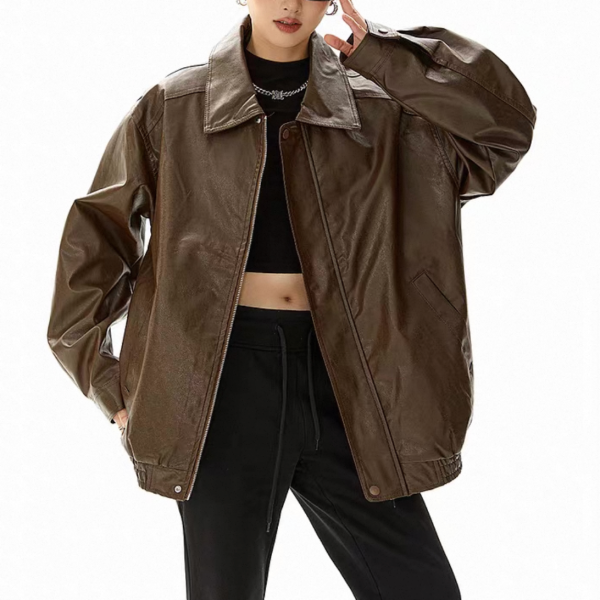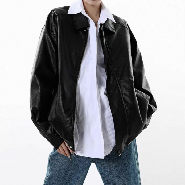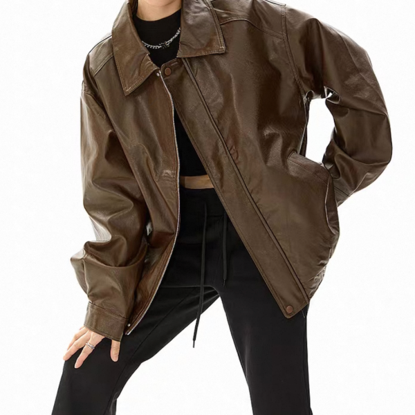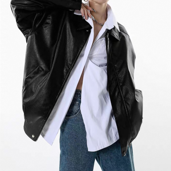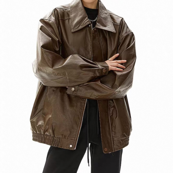 ICH MODE 2色展開 襟付き オーバーサイズ レザーブルゾン レザージャケット ジッパー ジップアップ ファスナー ビンテージ古着風 ユニセックス ワンホンが入荷しました。