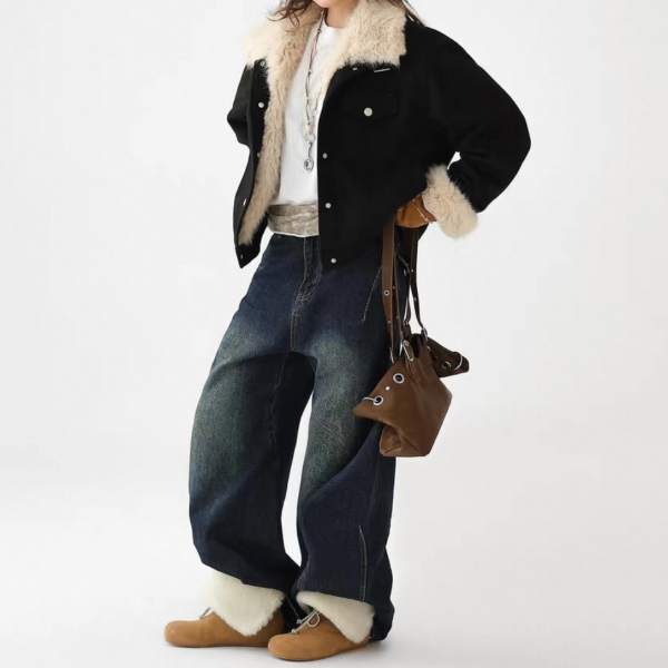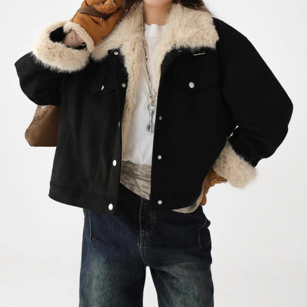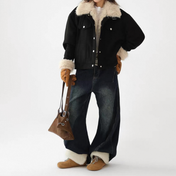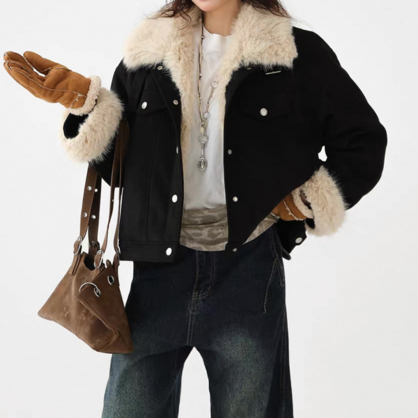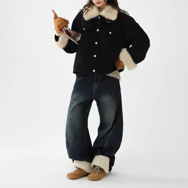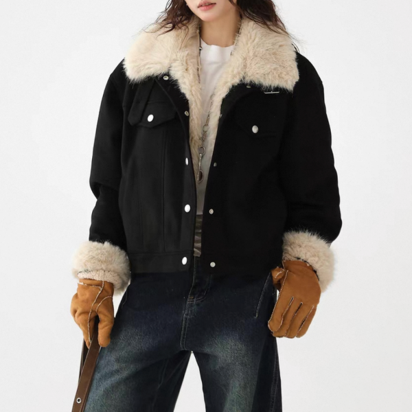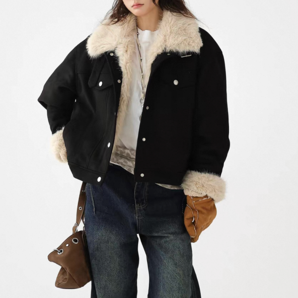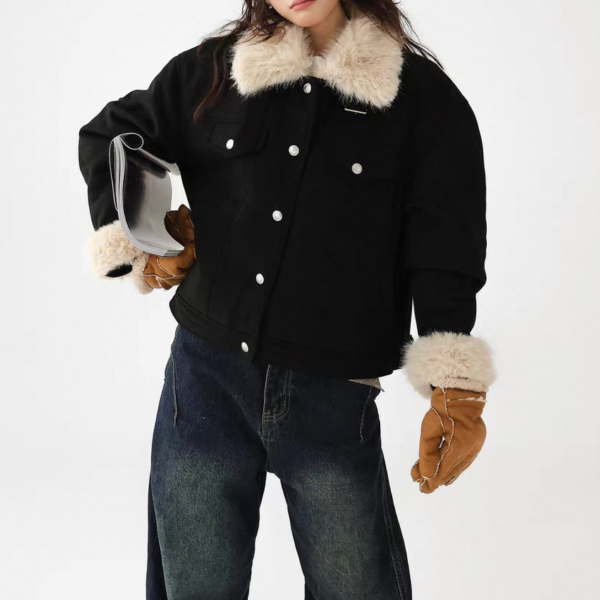 AceStudios ブラック フェイクファーカラー 襟付き ファーライナー トラッカージャケット 襟付き フロントボタン ワンホンが入荷しました。