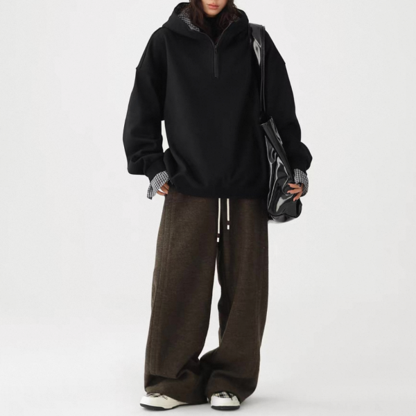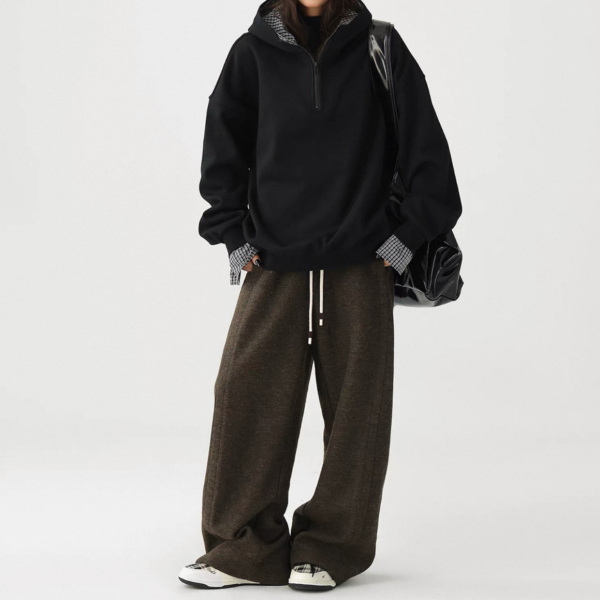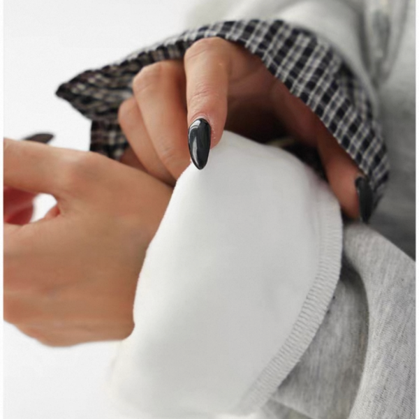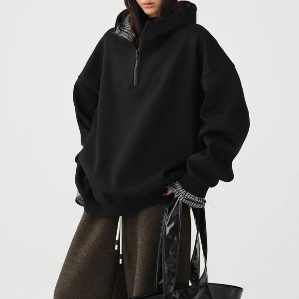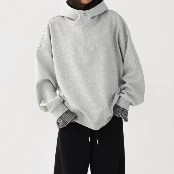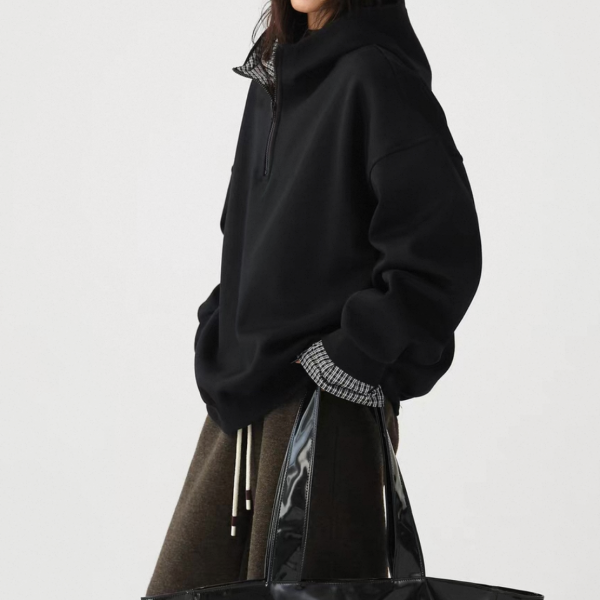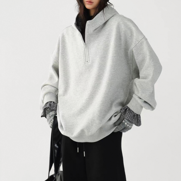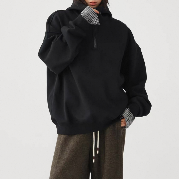 AceStudios 2色展開 レイヤード 重ね着風 チェック柄 ハーフジッパー ジップアップ ファスナー スウェット トップス プルオーバー ワンホンが入荷しました。