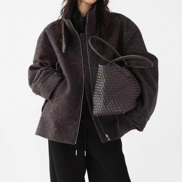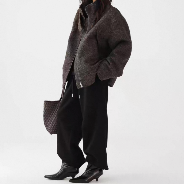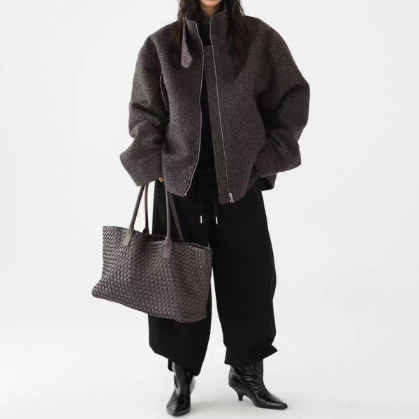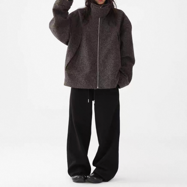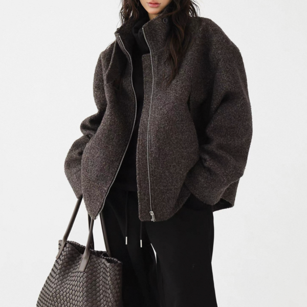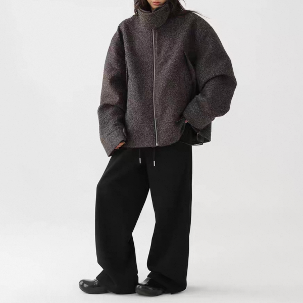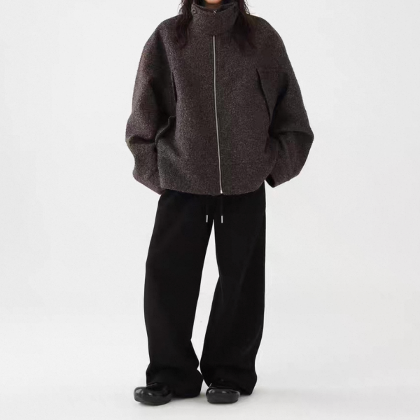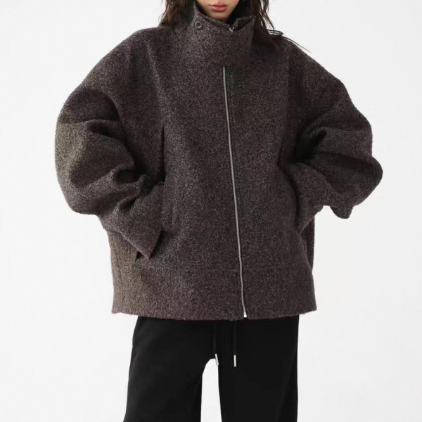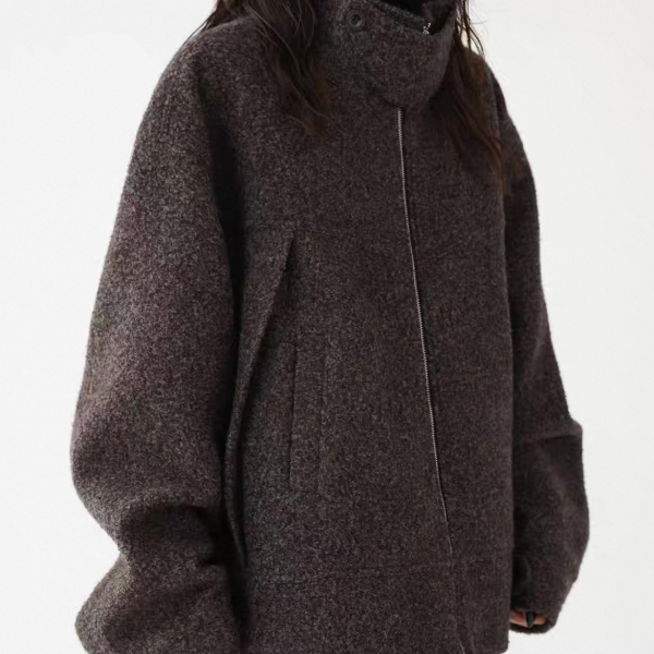 AceStudios チャコールグレー ジッパー ジップアップ ファスナー ウール調 スタンドカラー ハイネック オーバーサイズ ブルゾン ジャケット ワンホンが入荷しました。