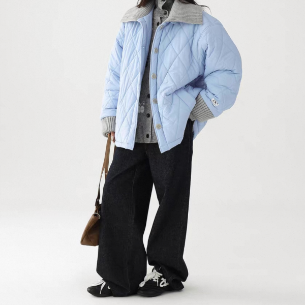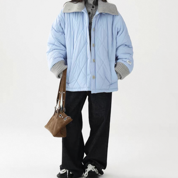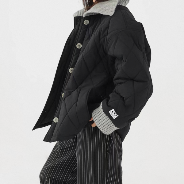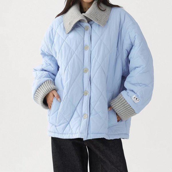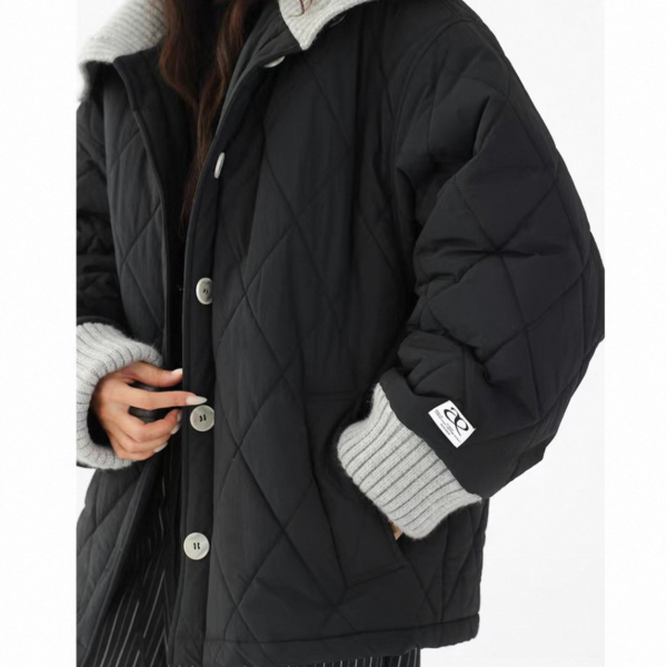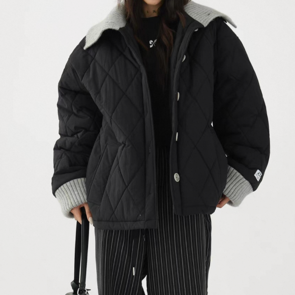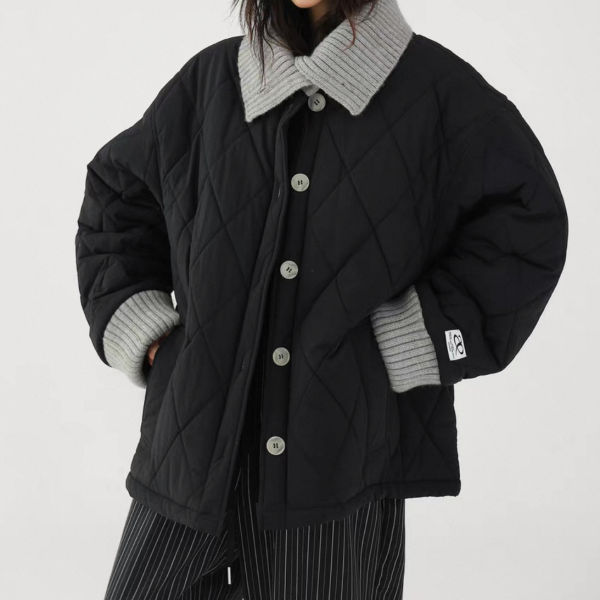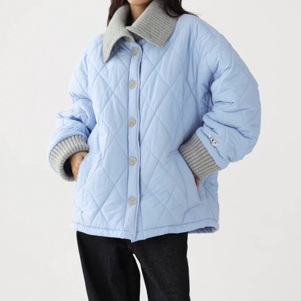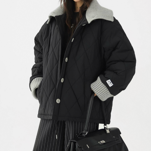 AceStudios 2色展開 異素材切替 リブデザイン キルティングジャケット キルティングブルゾン 襟付き オーバーサイズ フロントボタン ワンホンが入荷しました。