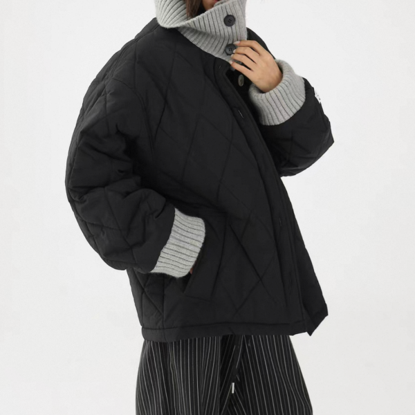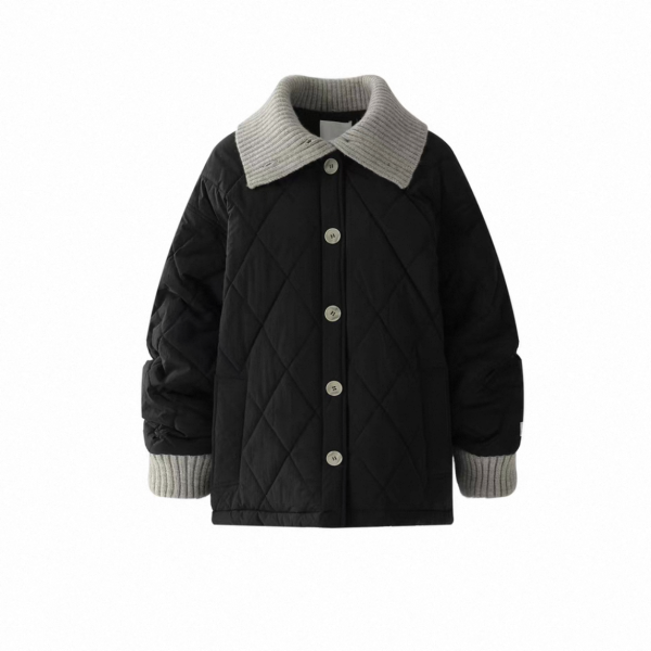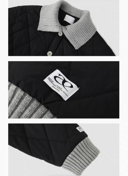 【大特価】AceStudios 2色展開 異素材切替 リブデザイン キルティングジャケット キルティングブルゾン 襟付き オーバーサイズ フロントボタン ワンホン