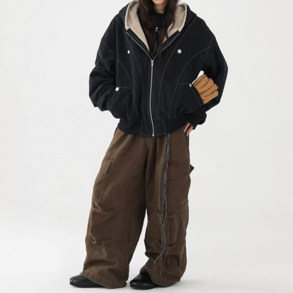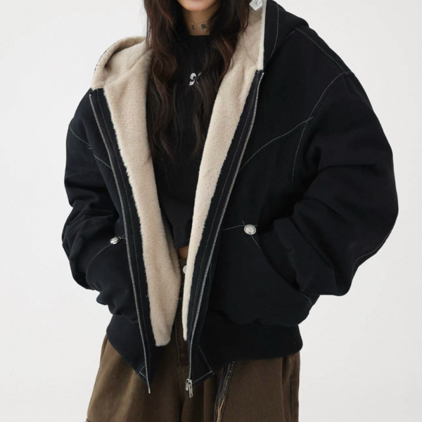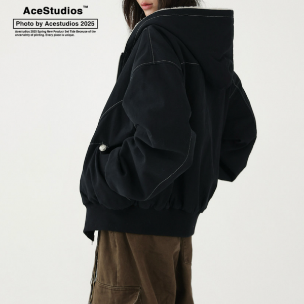 AceStudios ブラック ホワイトステッチ インナーファー インナーボア オーバーサイズ ブルゾン パーカー ジャケット ワンホンが入荷しました。