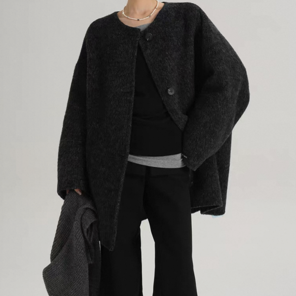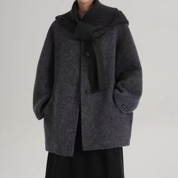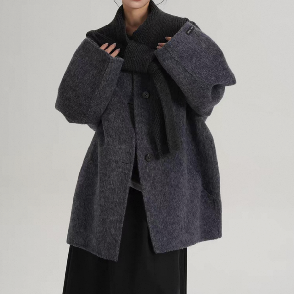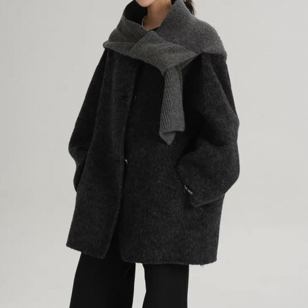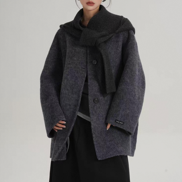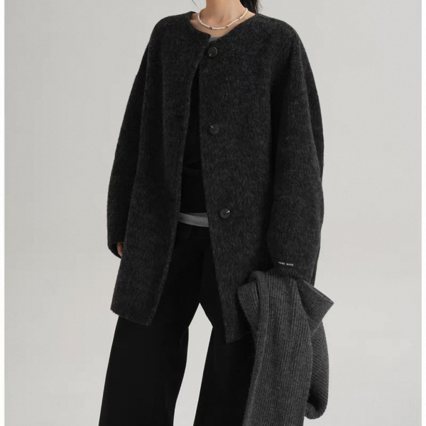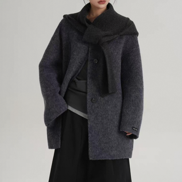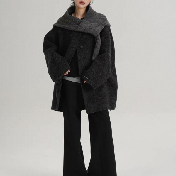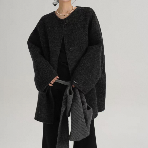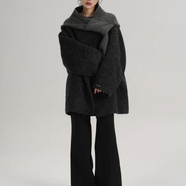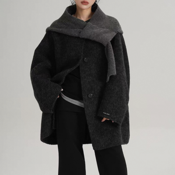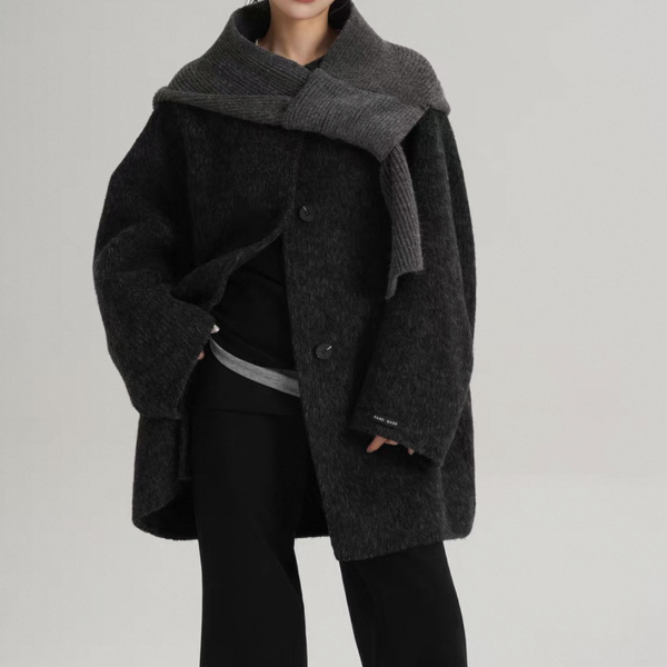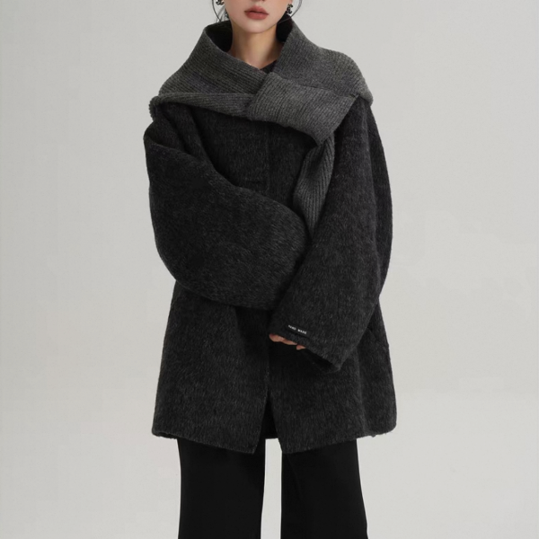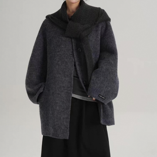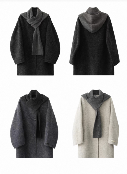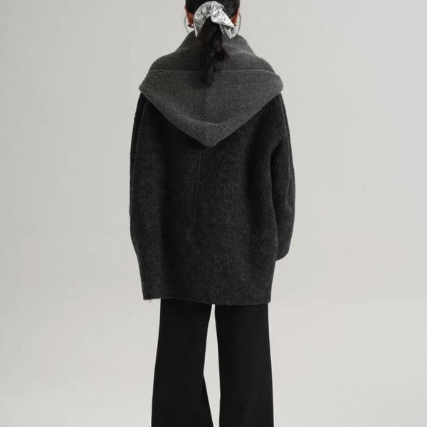 SRYS 2way 3色展開 ニットフード付き ウール調 ジャケット シングルボタン シングルブレスト ミドル丈コート ニットパーカー ノーカラージャケット ニットマフラー フーディー ワンホンが入荷しました。