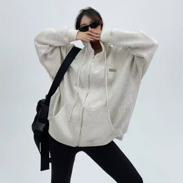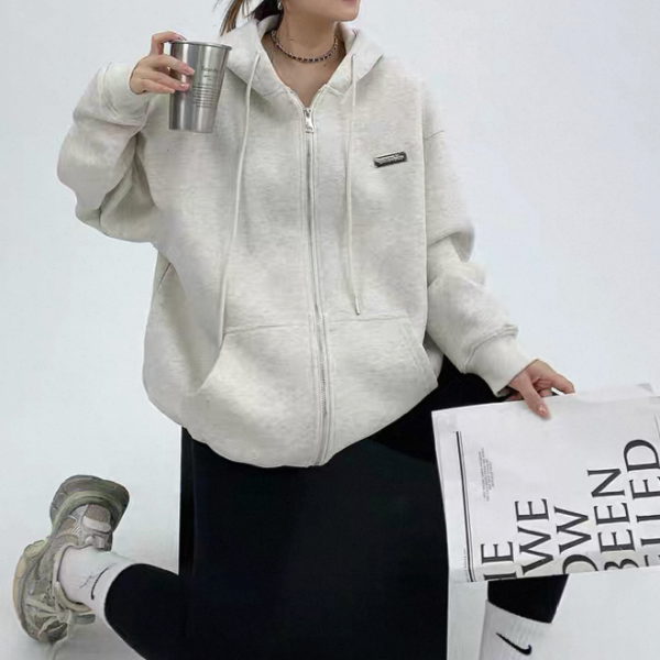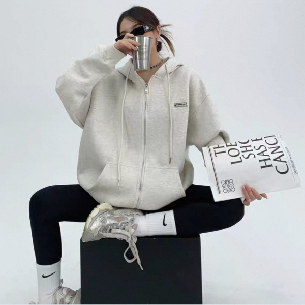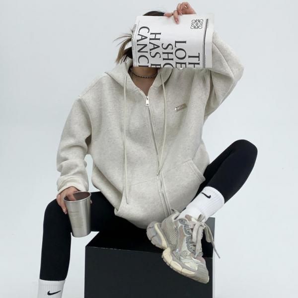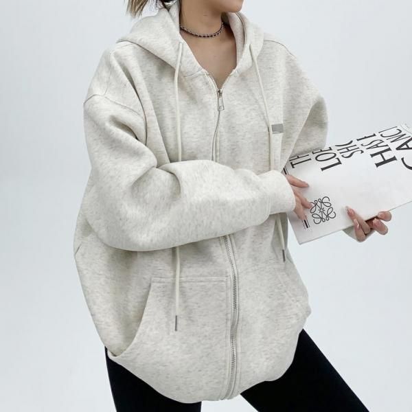 【大特価】Youlaile studio RICE CAKE OISIS グレー ジッパー ジップアップ ファスナー スウェット パーカー フーディー ジャケット ワンホン インポート 通販