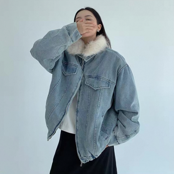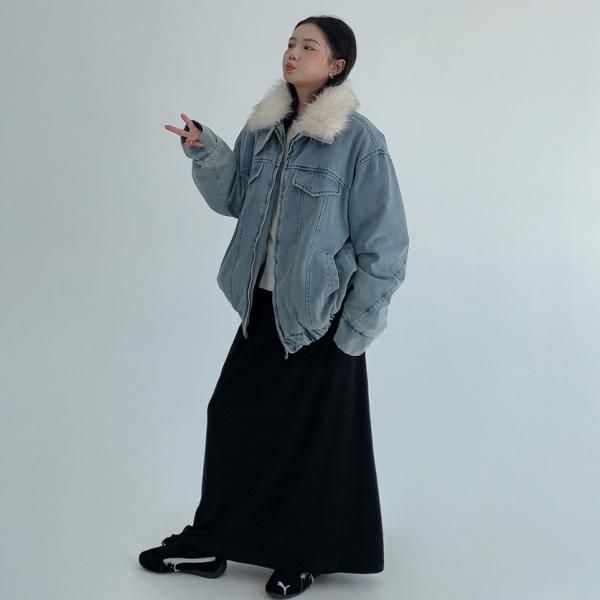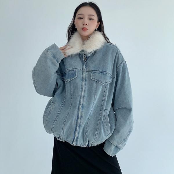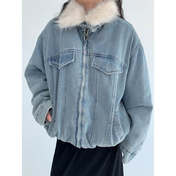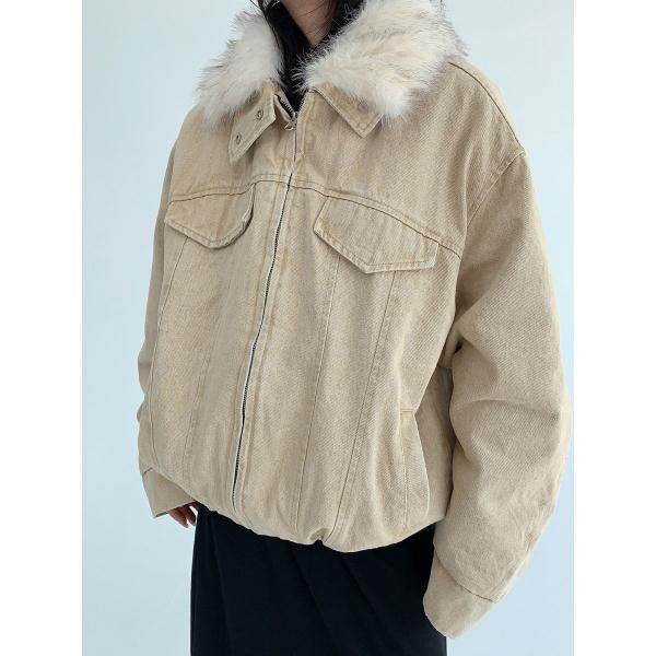 【大特価】Youlaile studio RICE CAKE OISIS 2色展開 2way ファー襟 ファーカラー スタンドカラー デニムブルゾン ファーティペット デニムジャケット ワンホン