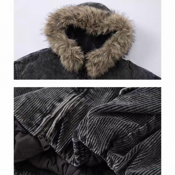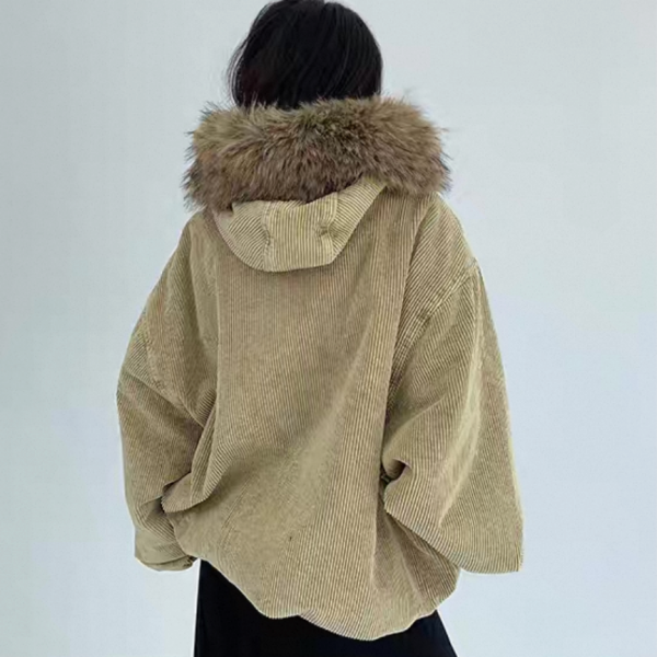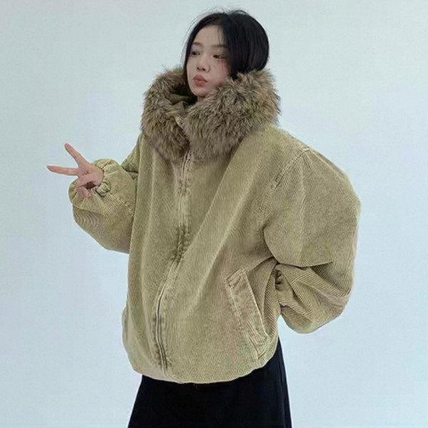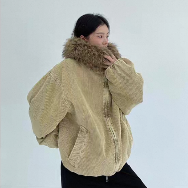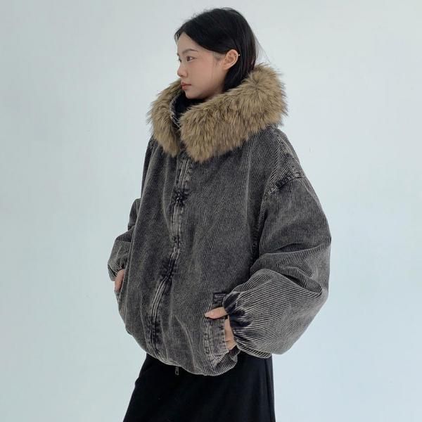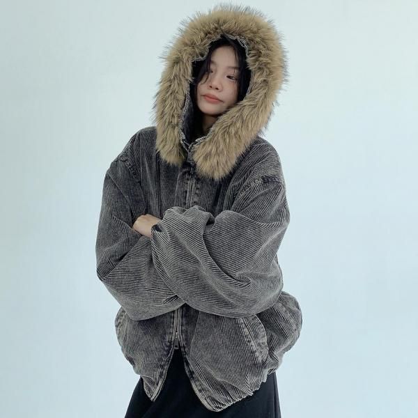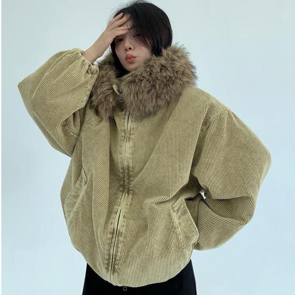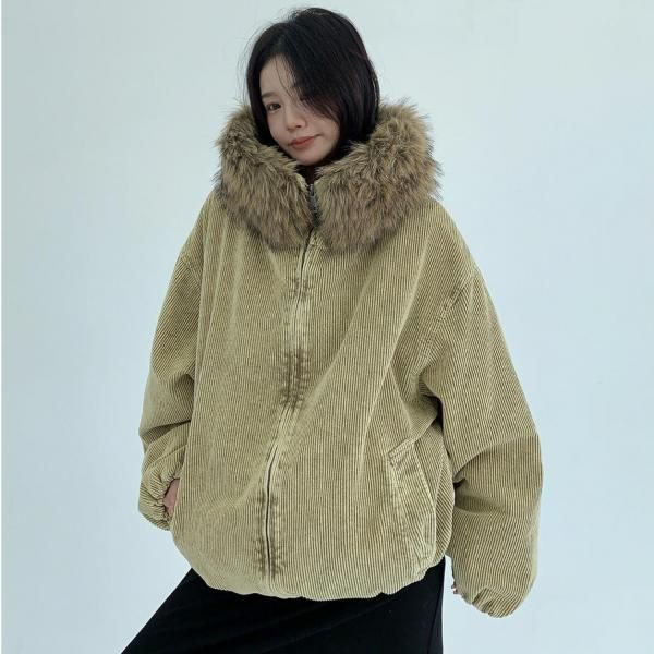 Youlaile studio RICE CAKE OISIS 2色展開 2way ビンテージ風 ファー襟 ファーカラー ファーパーカー ファーフーディー スタンドカラー コーデュロイジャケット ジッパー ジップアップ ファスナー ブルゾン ワンホンが入荷しました。