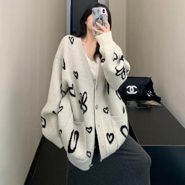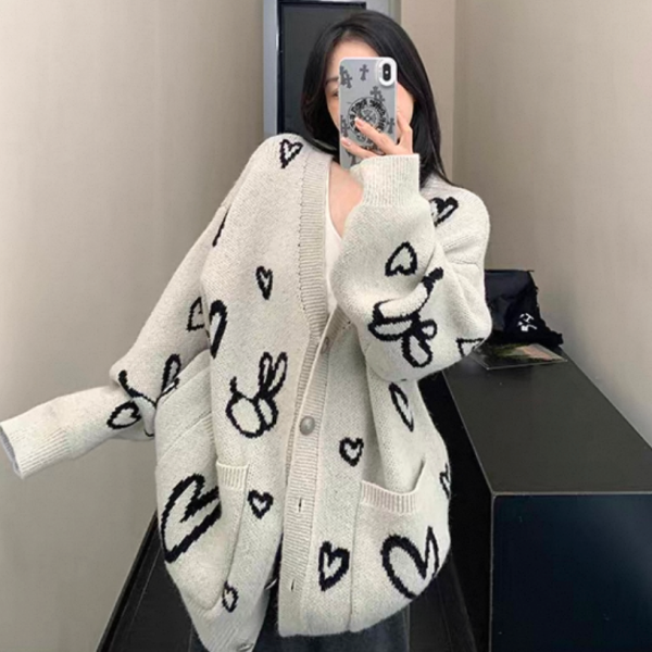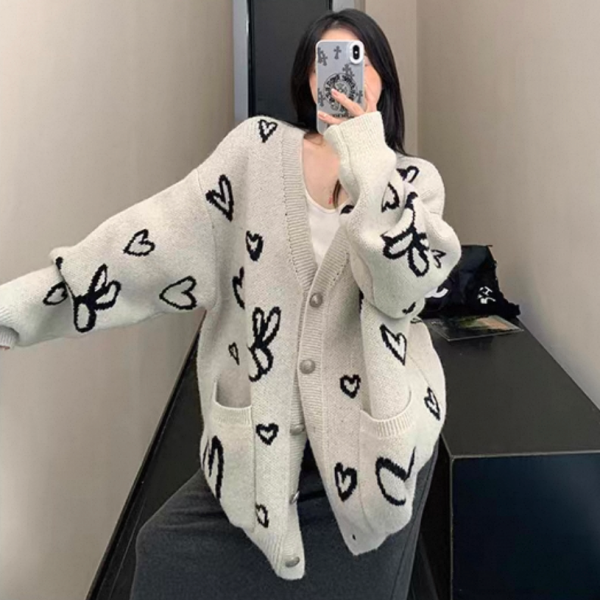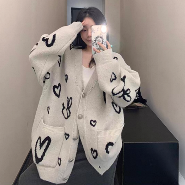 Youlaile studio RICE CAKE OISIS アイボリー ハート柄 総柄 オーバーサイズ ニットカーディガン セーター トップス ワンホン が入荷しました。