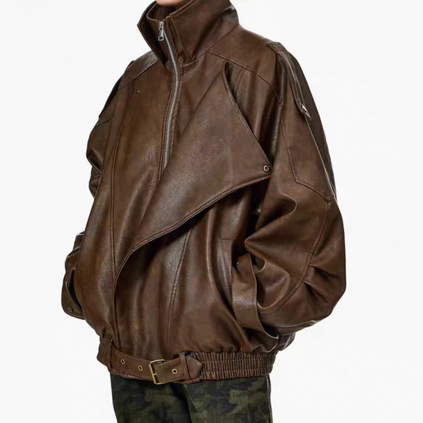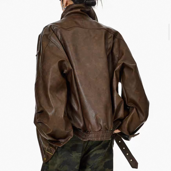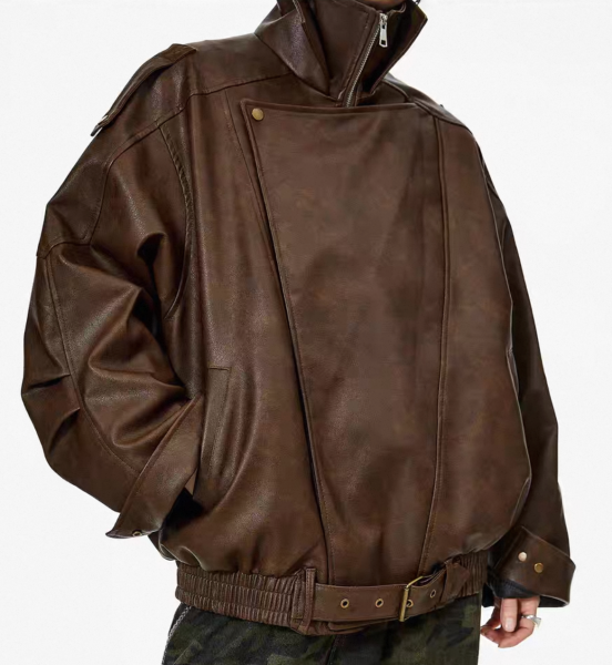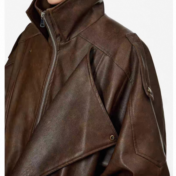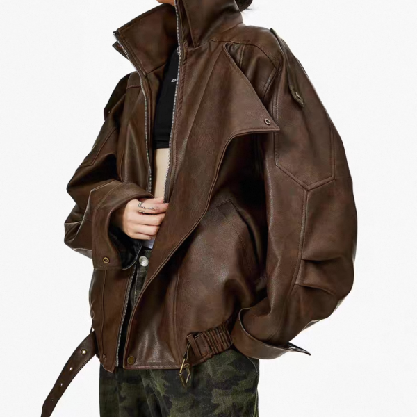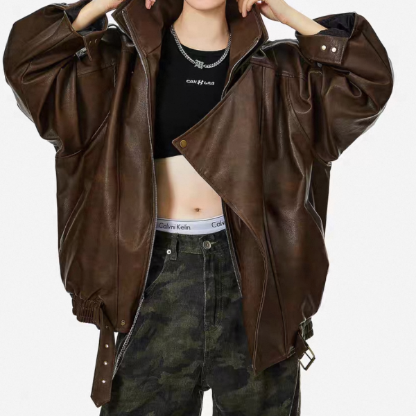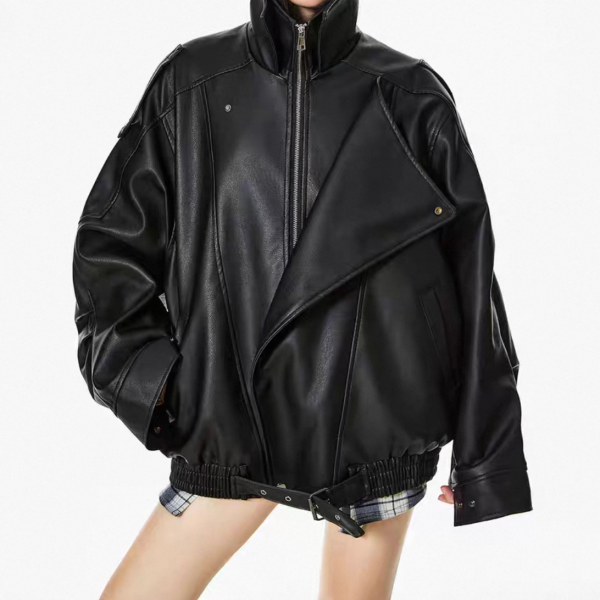 【大特価】ICH MODE 2色展開 スタンドカラー オーバーサイズ ビッグカラー フェイクレザー 合皮 ライダースジャケット レザージャケット レザーブルゾン ワンホン