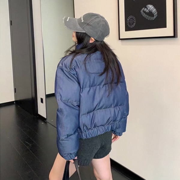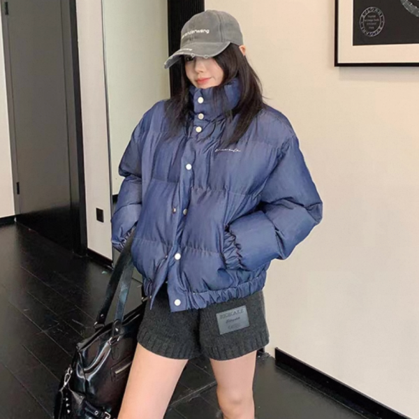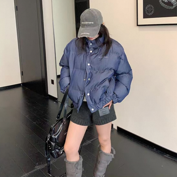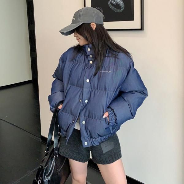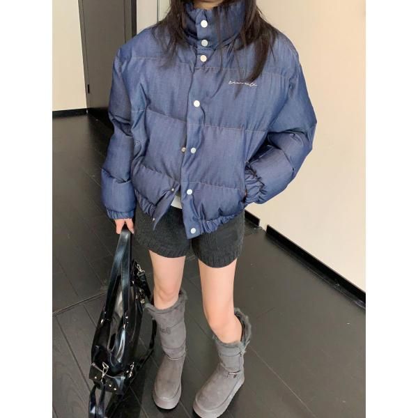 【大特価】Youlaile studio RICE CAKE OISIS ネイビー スタンドカラー ロゴデザイン ダウンジャケット パファージャケット ブルゾン ワンホン インポート 通販