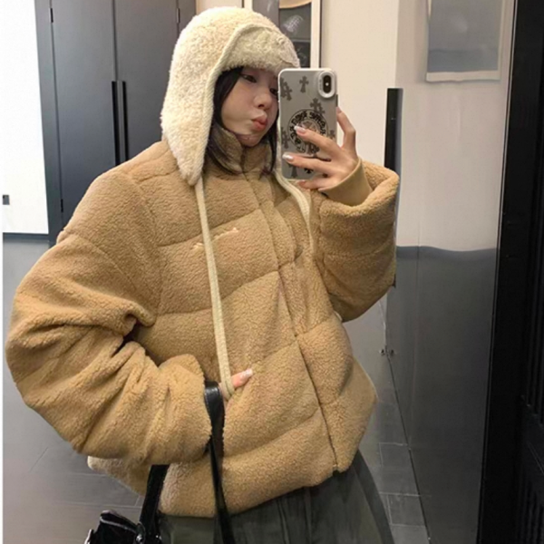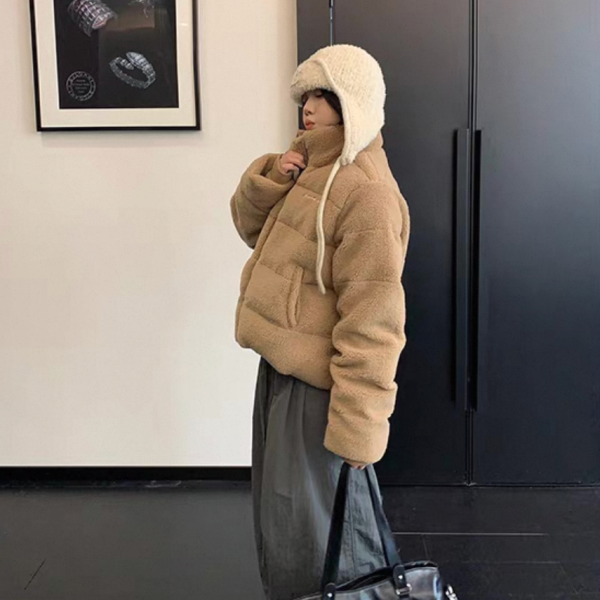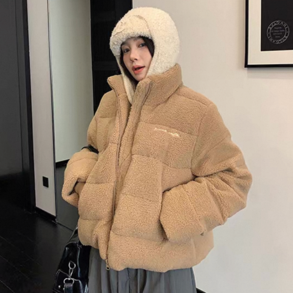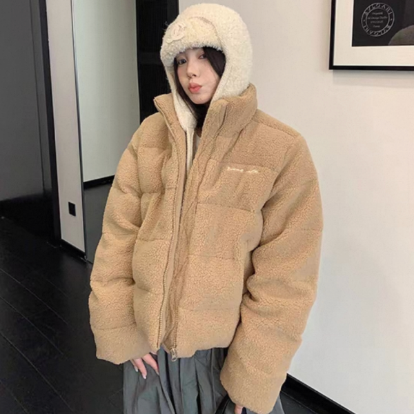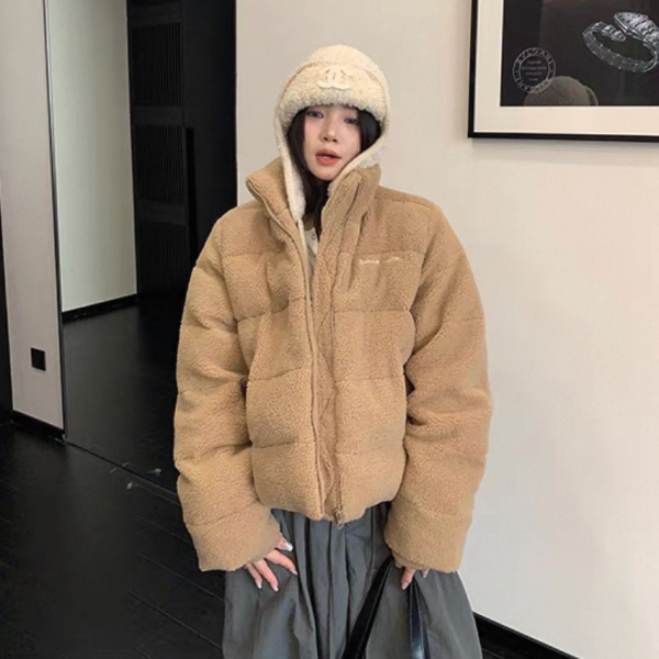 Youlaile studio RICE CAKE OISIS ベージュ ボアジャケット ダウンジャケット スタンドカラー テディベアジャケット パファージャケット ワンホンが入荷しました。