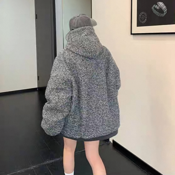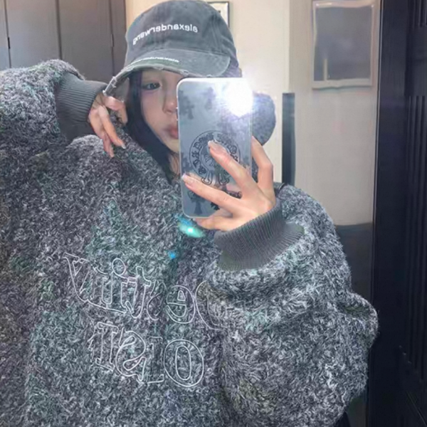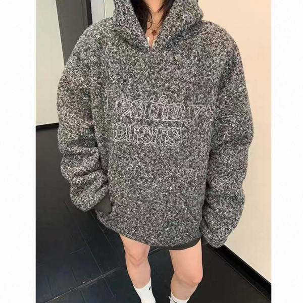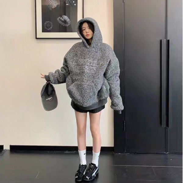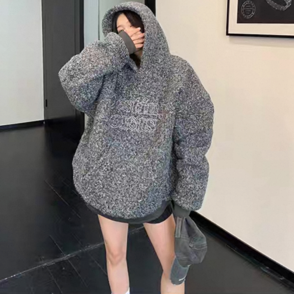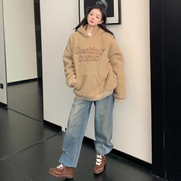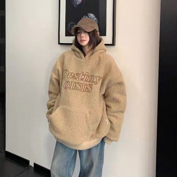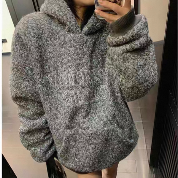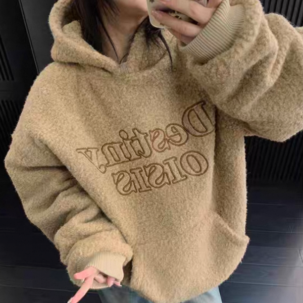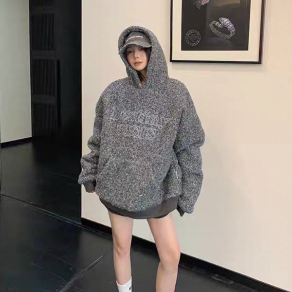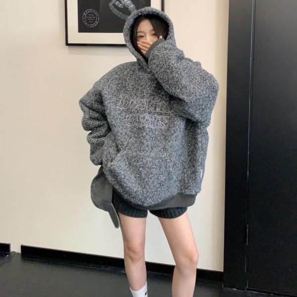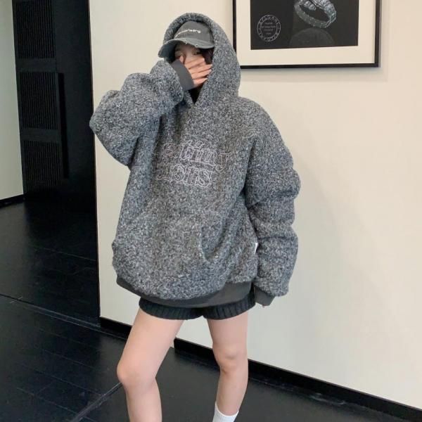 【大特価】Youlaile studio RICE CAKE OISIS 2色展開 フロントロゴ ウール調 起毛素材 オーバーサイズ パーカー フーディー トップス プルオーバー ワンホン