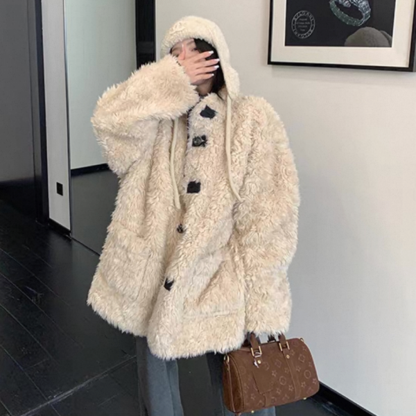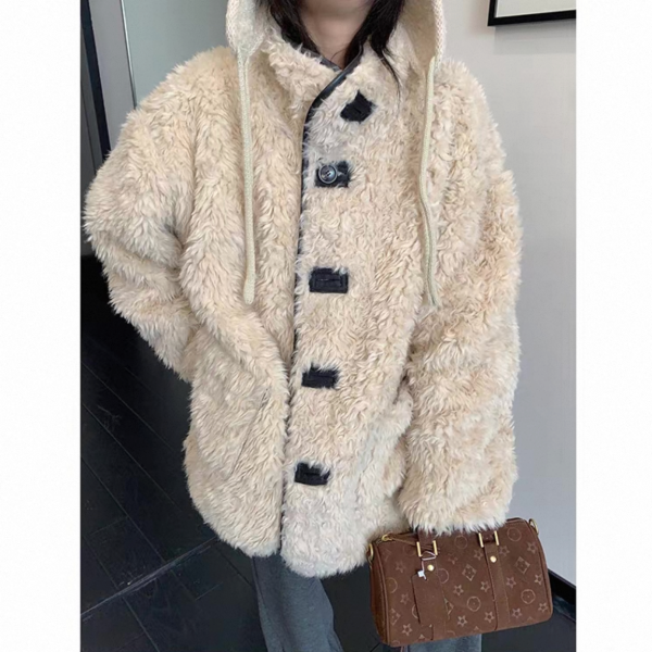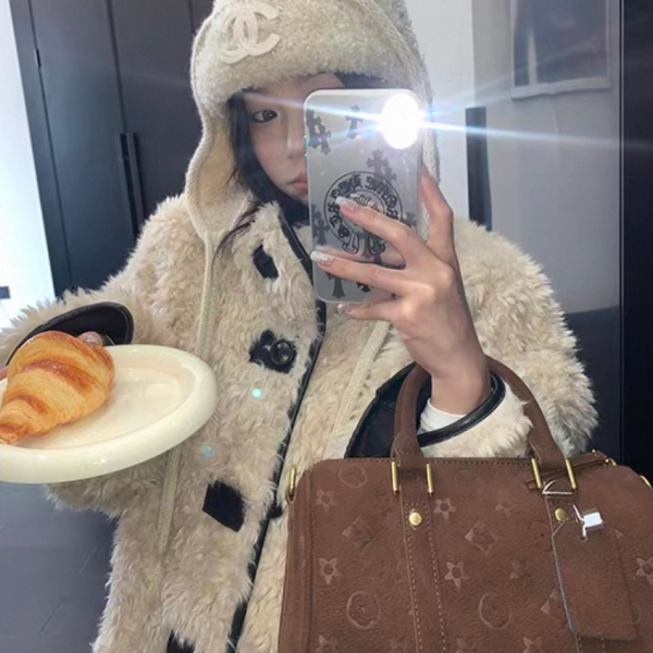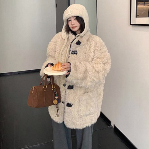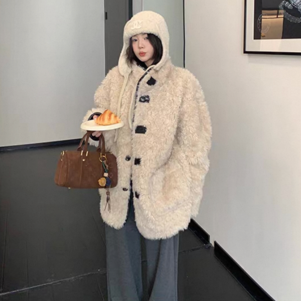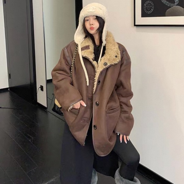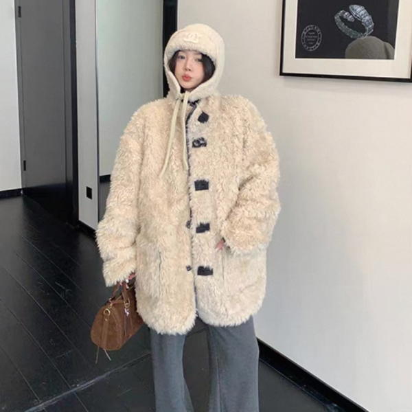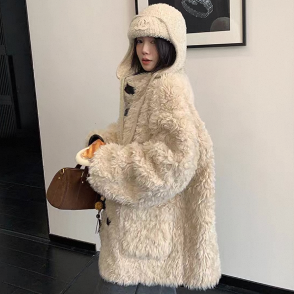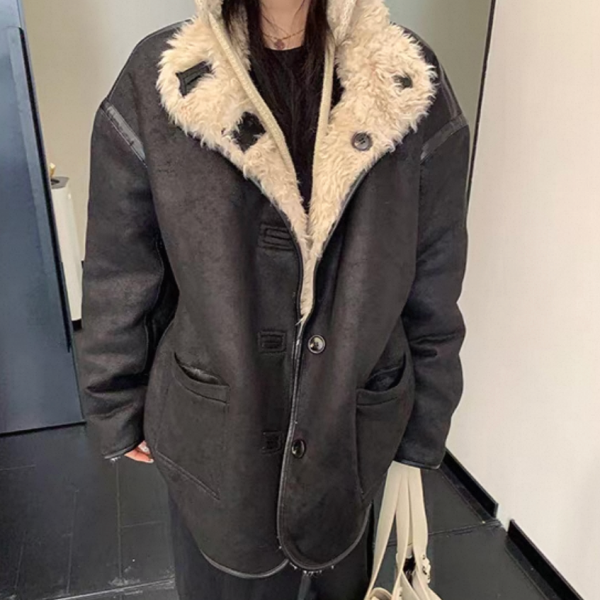 【大特価】Youlaile studio RICE CAKE OISIS 2色展開 リバーシブル 2way ミドル丈 フェイクファージャケット レザージャケット フロントボタン ワンホン