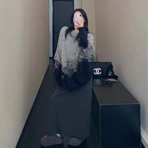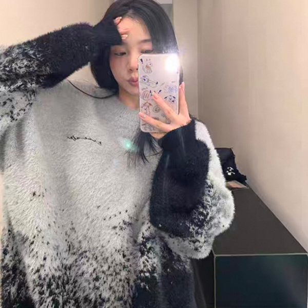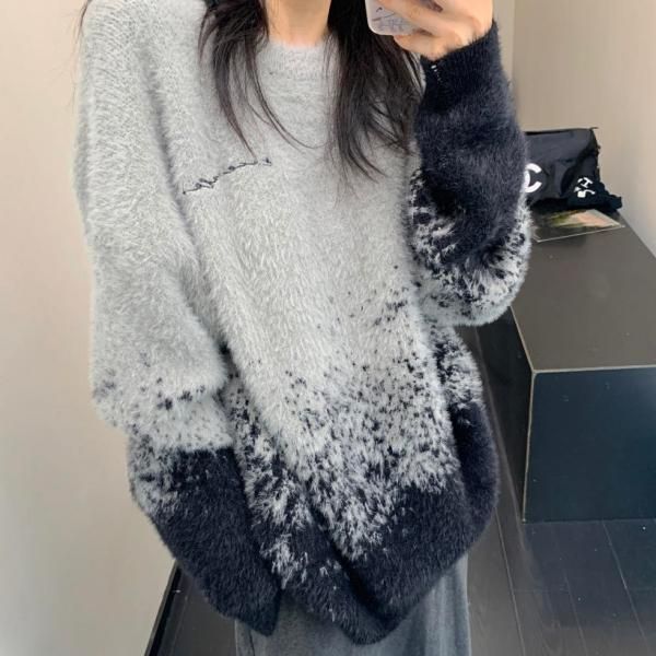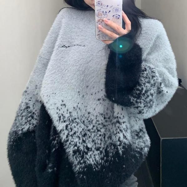 Youlaile studio RICE CAKE OISIS グレー モヘア フェイクファー グラデーション オーバーサイズ ニット セーター トップス プルオーバー ワンホンが入荷しました。