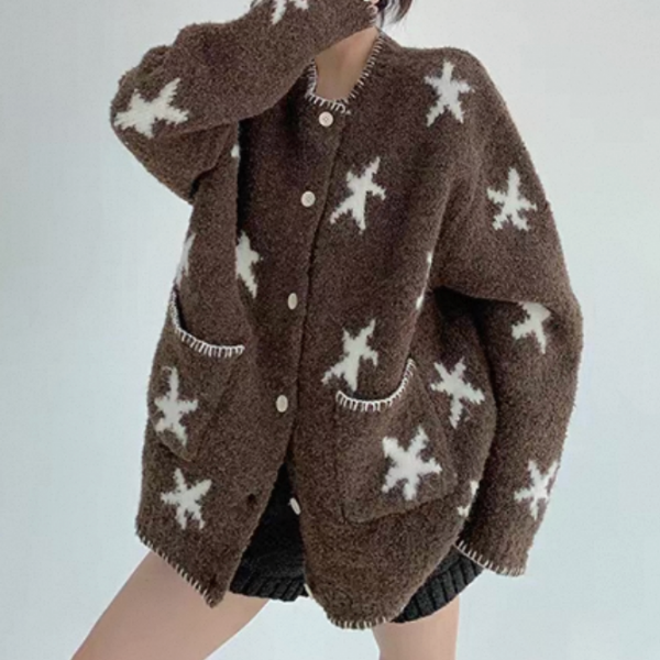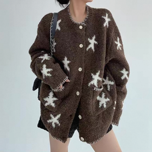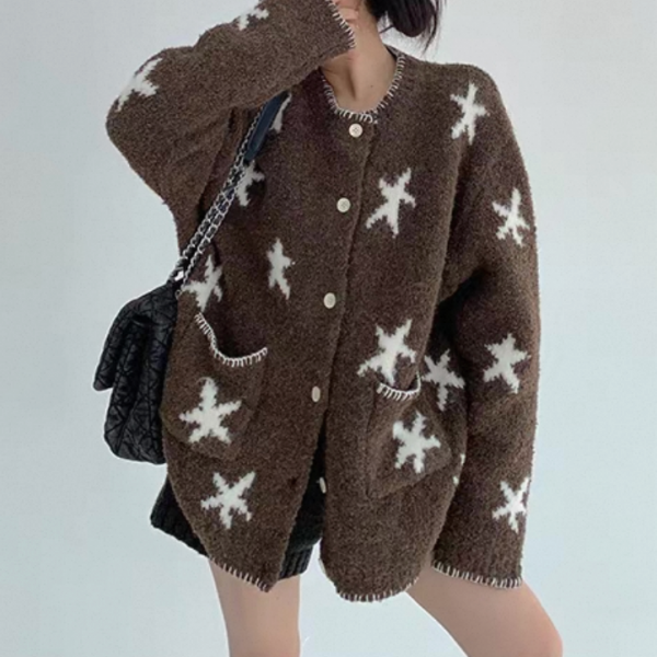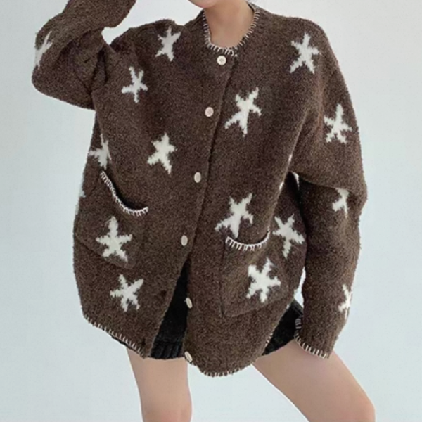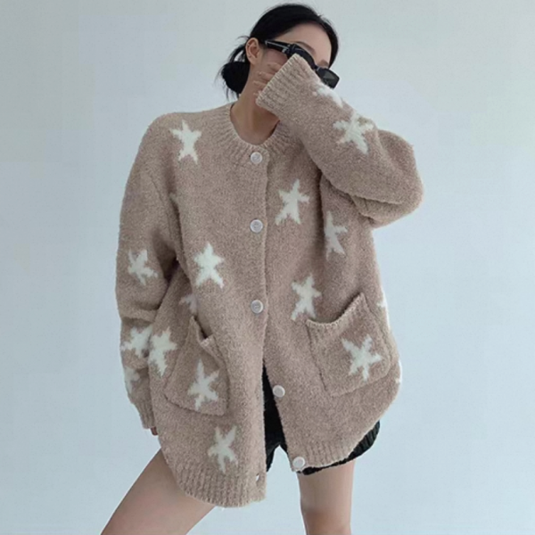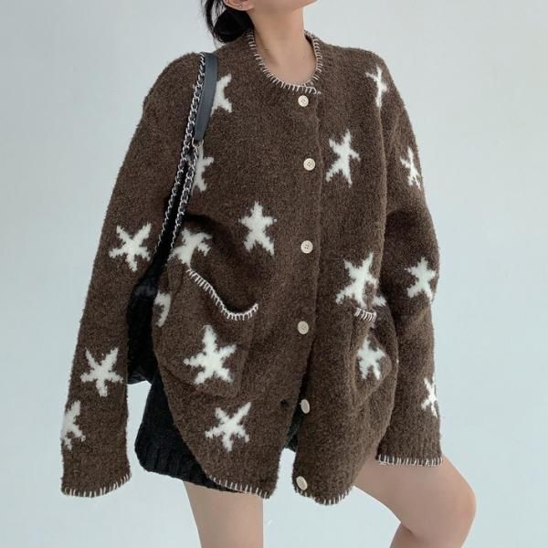 【大特価】Youlaile studio RICE CAKE OISIS 2色展開 ホワイトトリム ステッチ スター 星 長袖 ニットカーディガン セーター ニットジャケット ワンホン