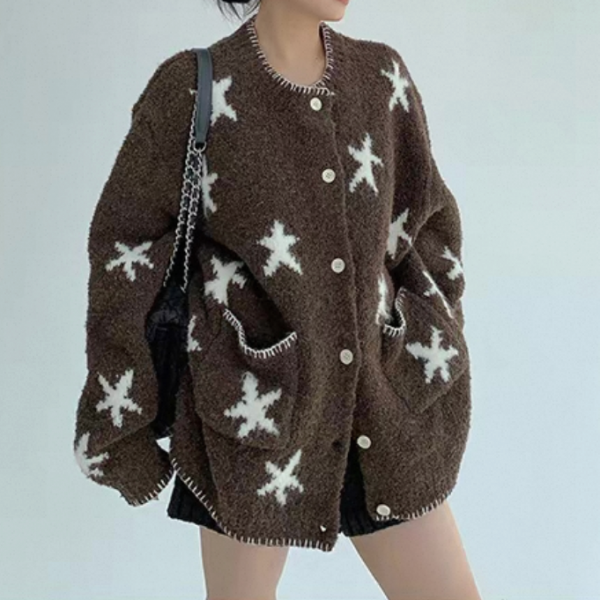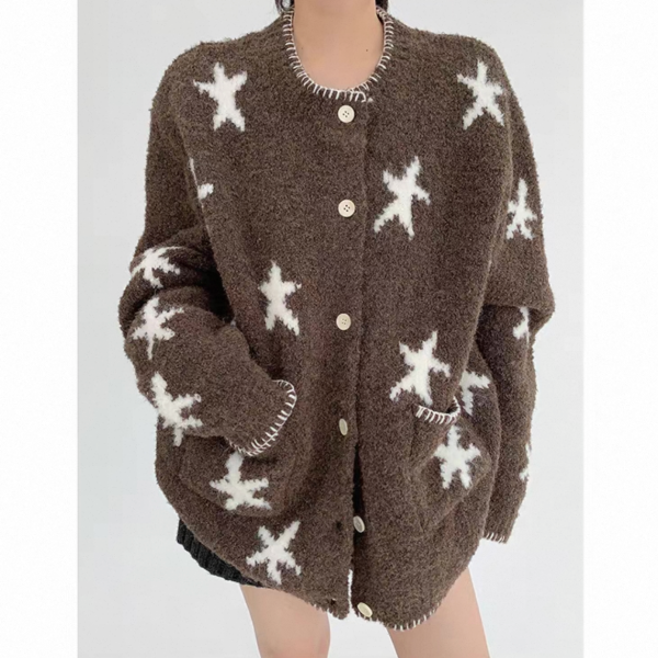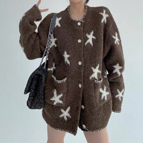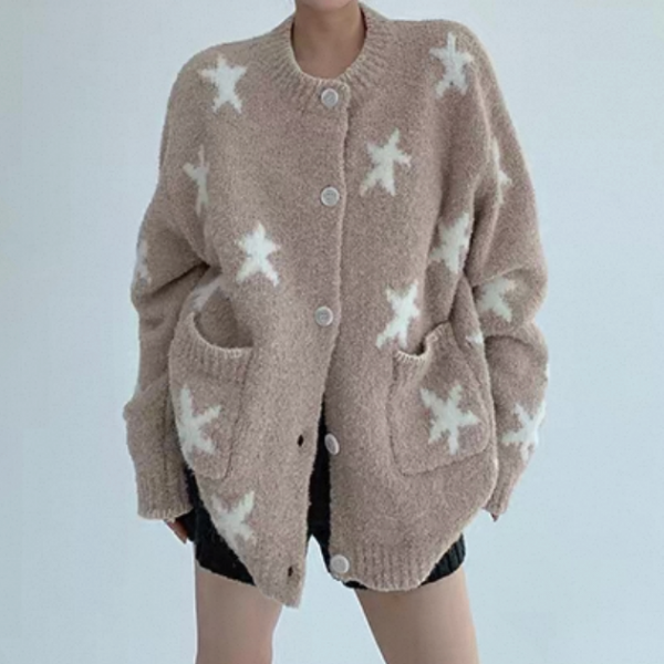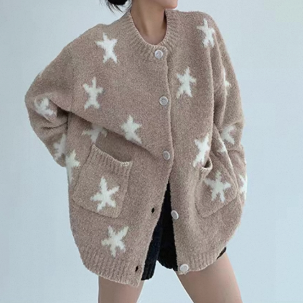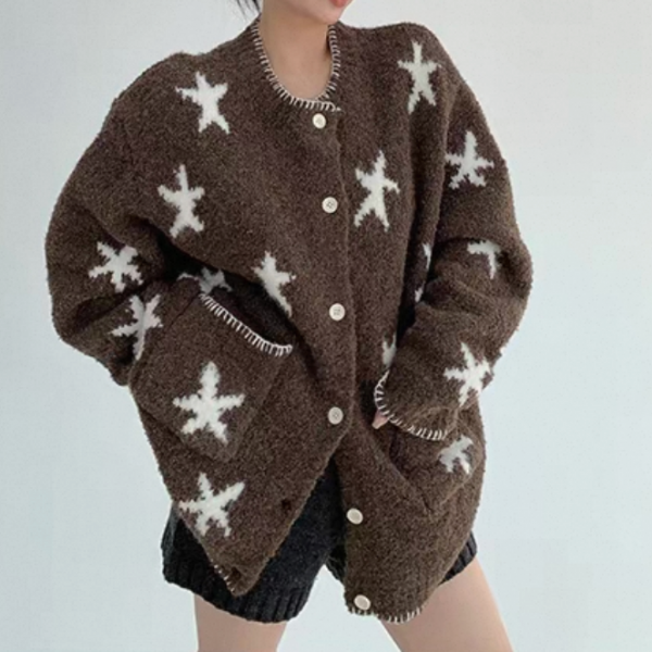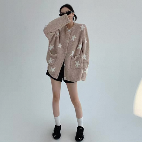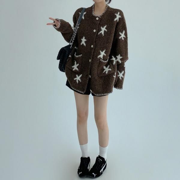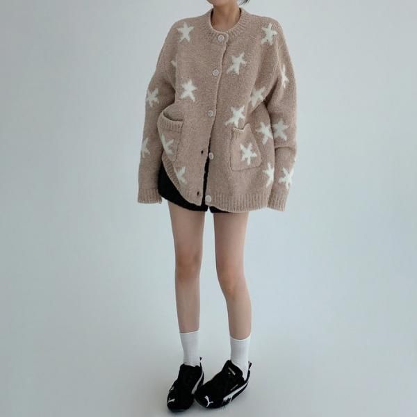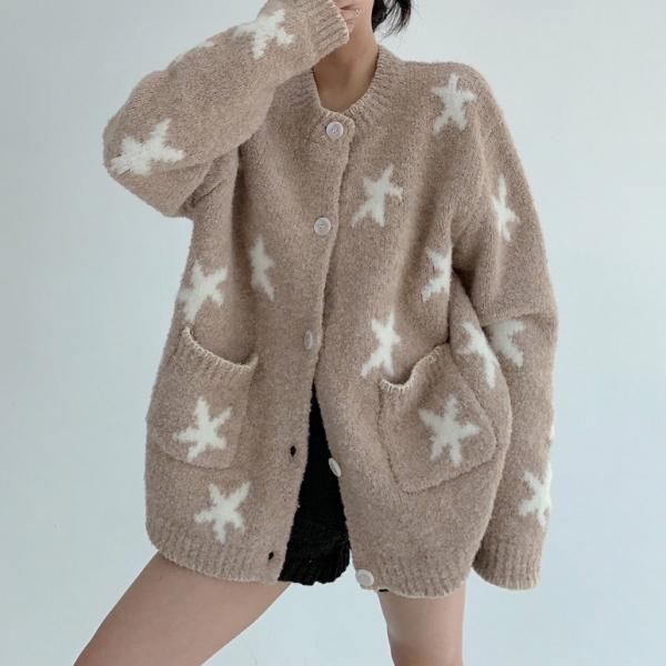 Youlaile studio RICE CAKE OISIS 2色展開 スター 星 ホワイトトリム ステッチ フロントボタン 長袖 ニットカーディガン セーター ニットジャケット ワンホンが入荷しました。