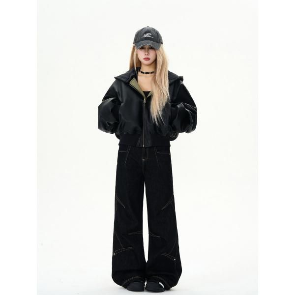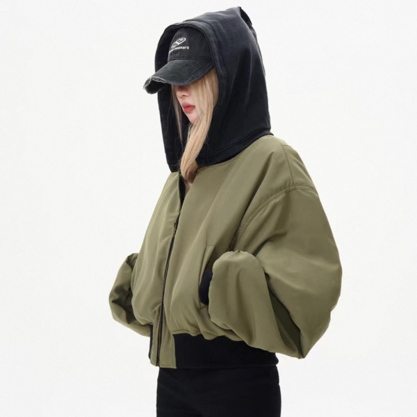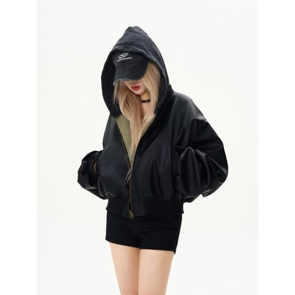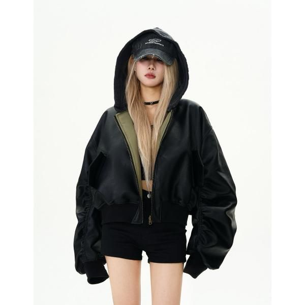 MaxDstr 2way リバーシブル アーミーグリーンxブラック フェイクレザージャケット レザーブルゾン ジッパー ジップアップ ファスナー ミリタリージャケット バイカラー シャーリングスリーブ ボンバージャケット ワンホンが入荷しました。