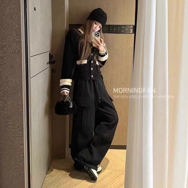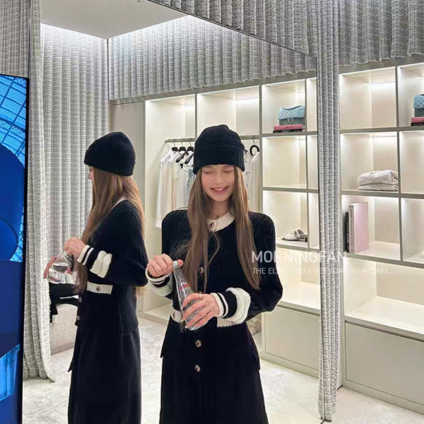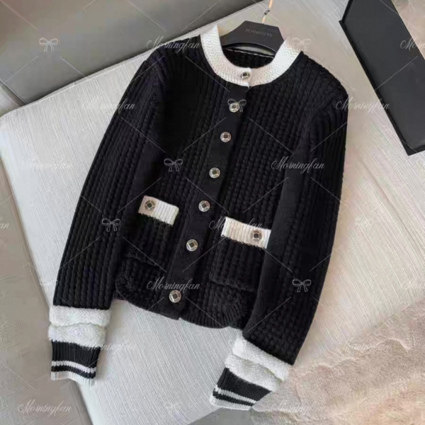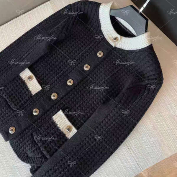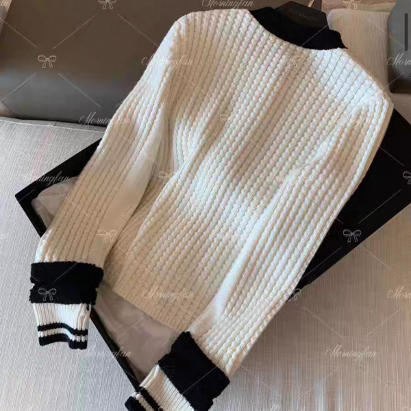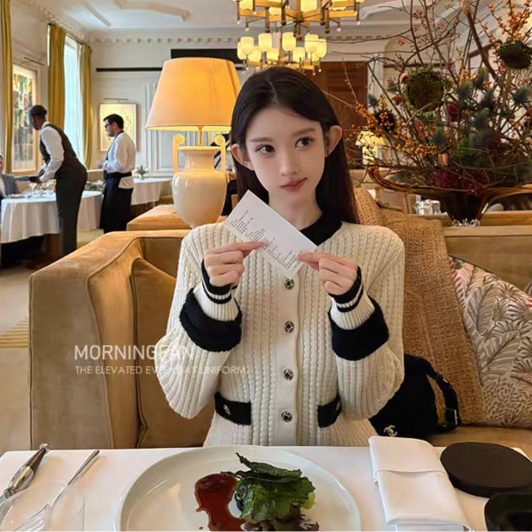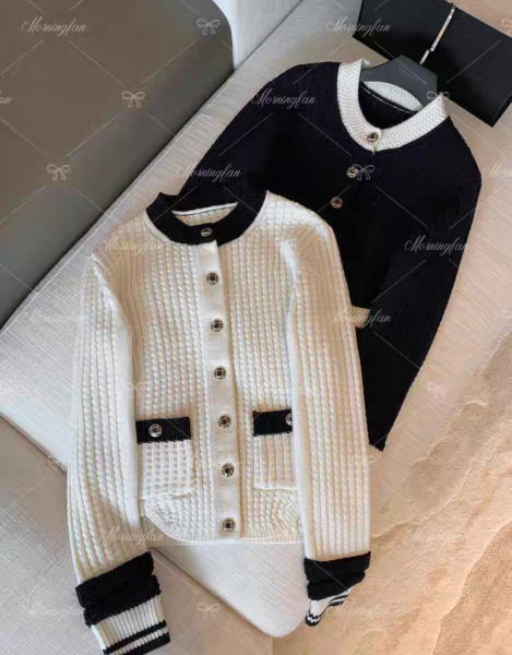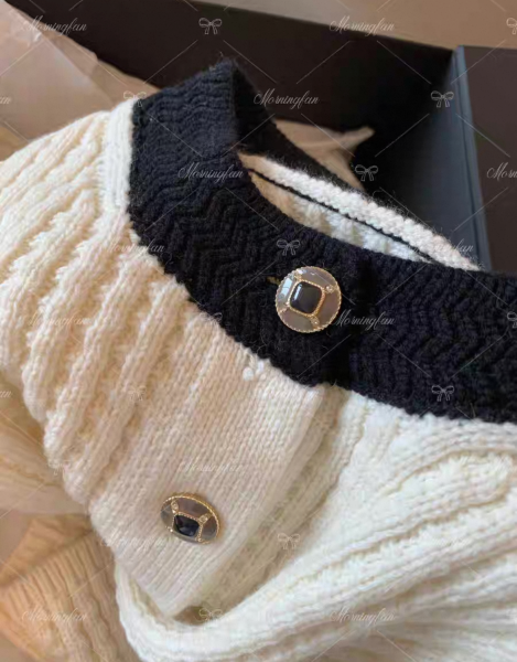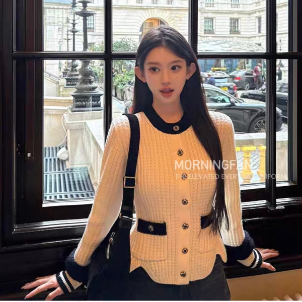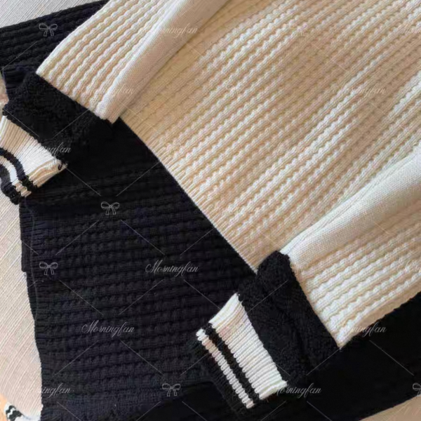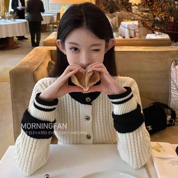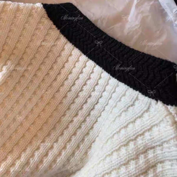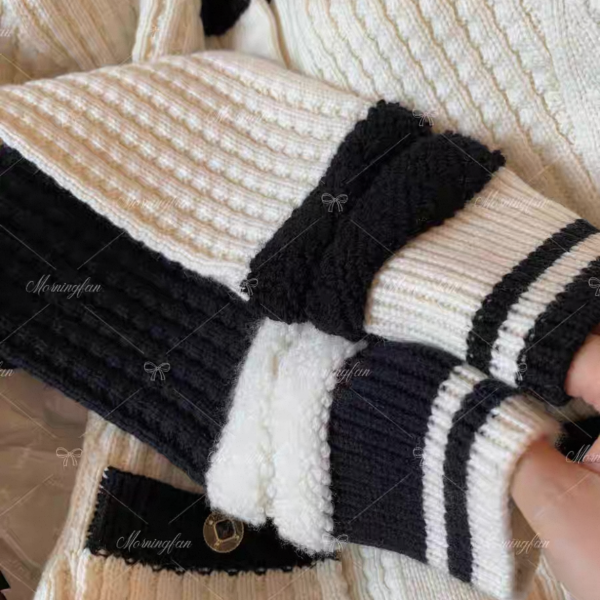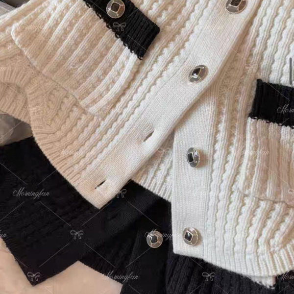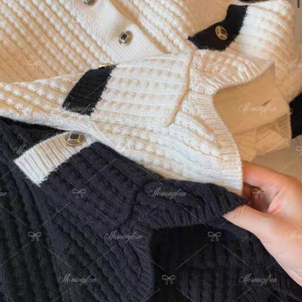 2色展開 バイカラー モノトーン フロントボタン リブデザイン クルーネック 長袖 ニットカーディガン セーター トップス 韓国が入荷しました。