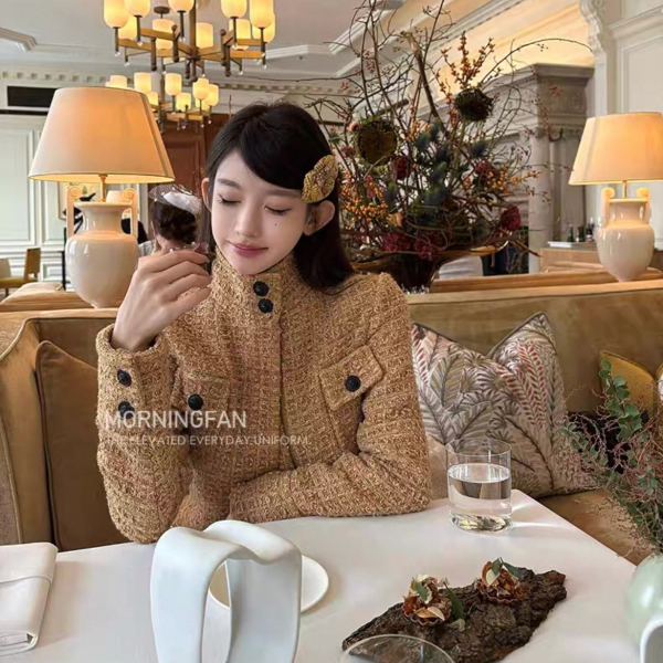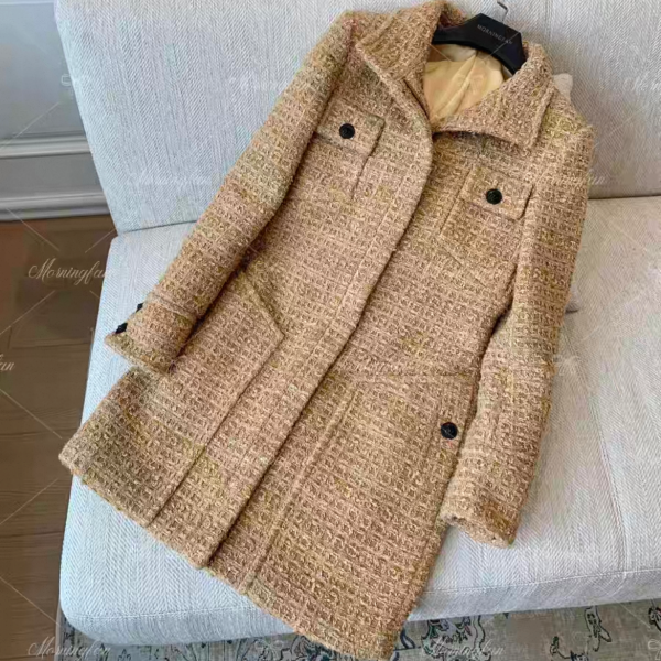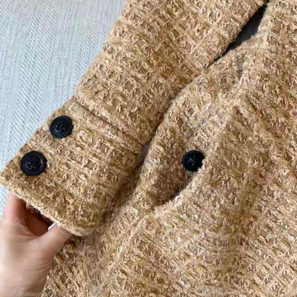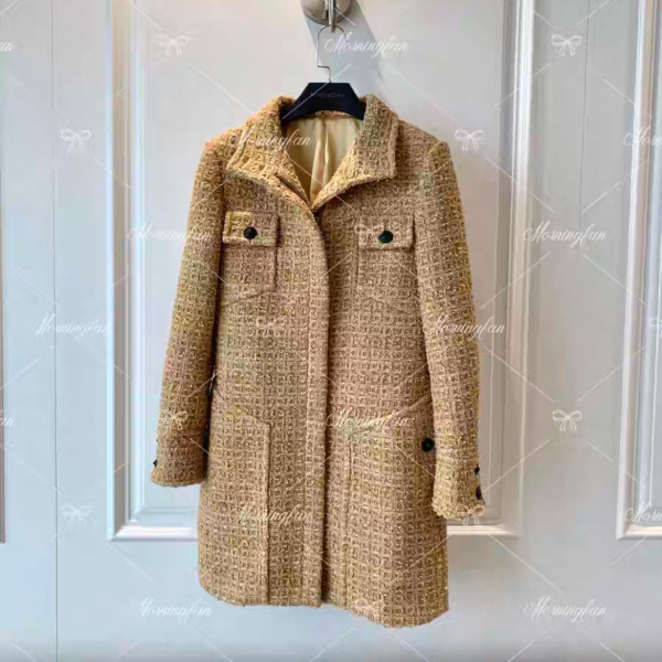 マスタードイエロー カメリア ブローチ ミックスカラー ダブルポケット スタンドカラー ウール調 ロングコート が入荷しました。