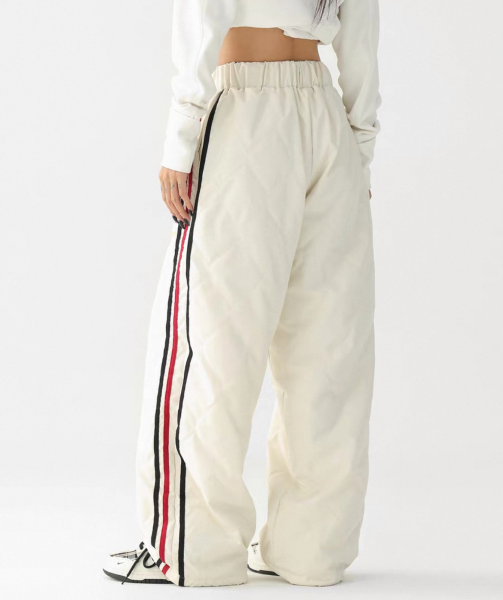 AceStudios ホワイト サイドライン サイドストライプ キルティングパンツ ロングパンツ ダウンパンツ キルトパンツ ワンホンが入荷しました。