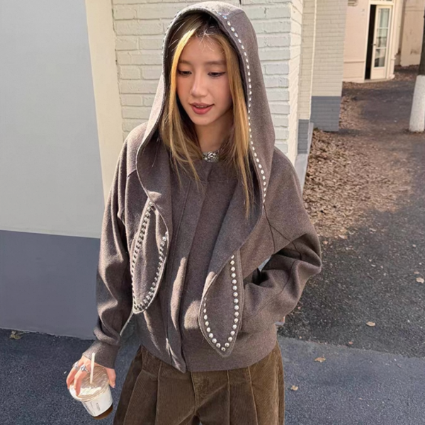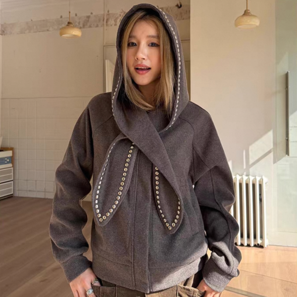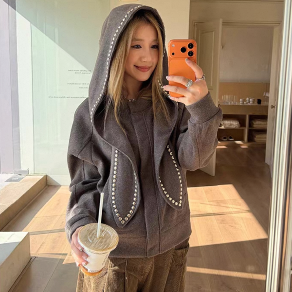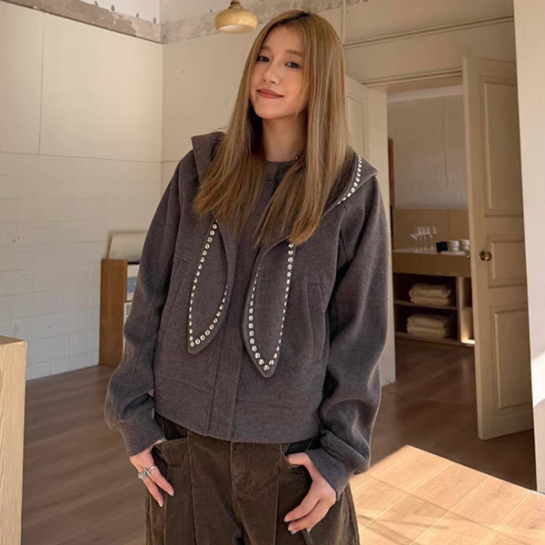 CCYE グレー スタッズ うさ耳 バニー パーカー フーディー ジャケット ブルゾン ノーカラージャケット ワンホン が入荷しました。