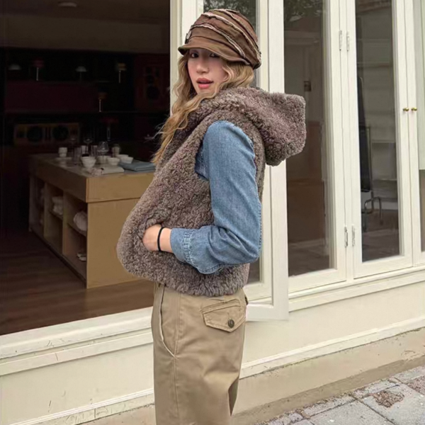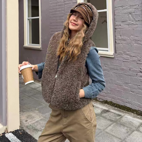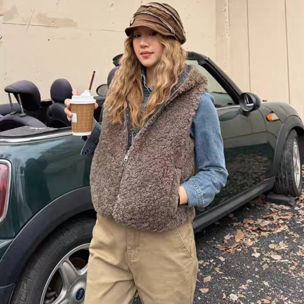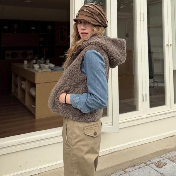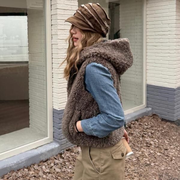 CCYE ブラウン ジッパー ジップアップ ファスナー ボアベスト テディベアベスト パーカー フーディー テディベアファーベスト ワンホンが入荷しました。