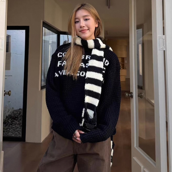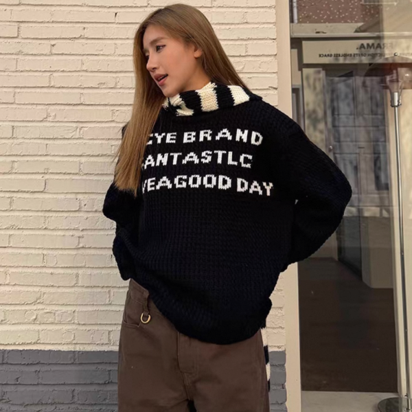 CCYE 2色展開 フロントロゴ クルーネック 長袖 ニット セーター トップス プルオーバーが入荷しました。